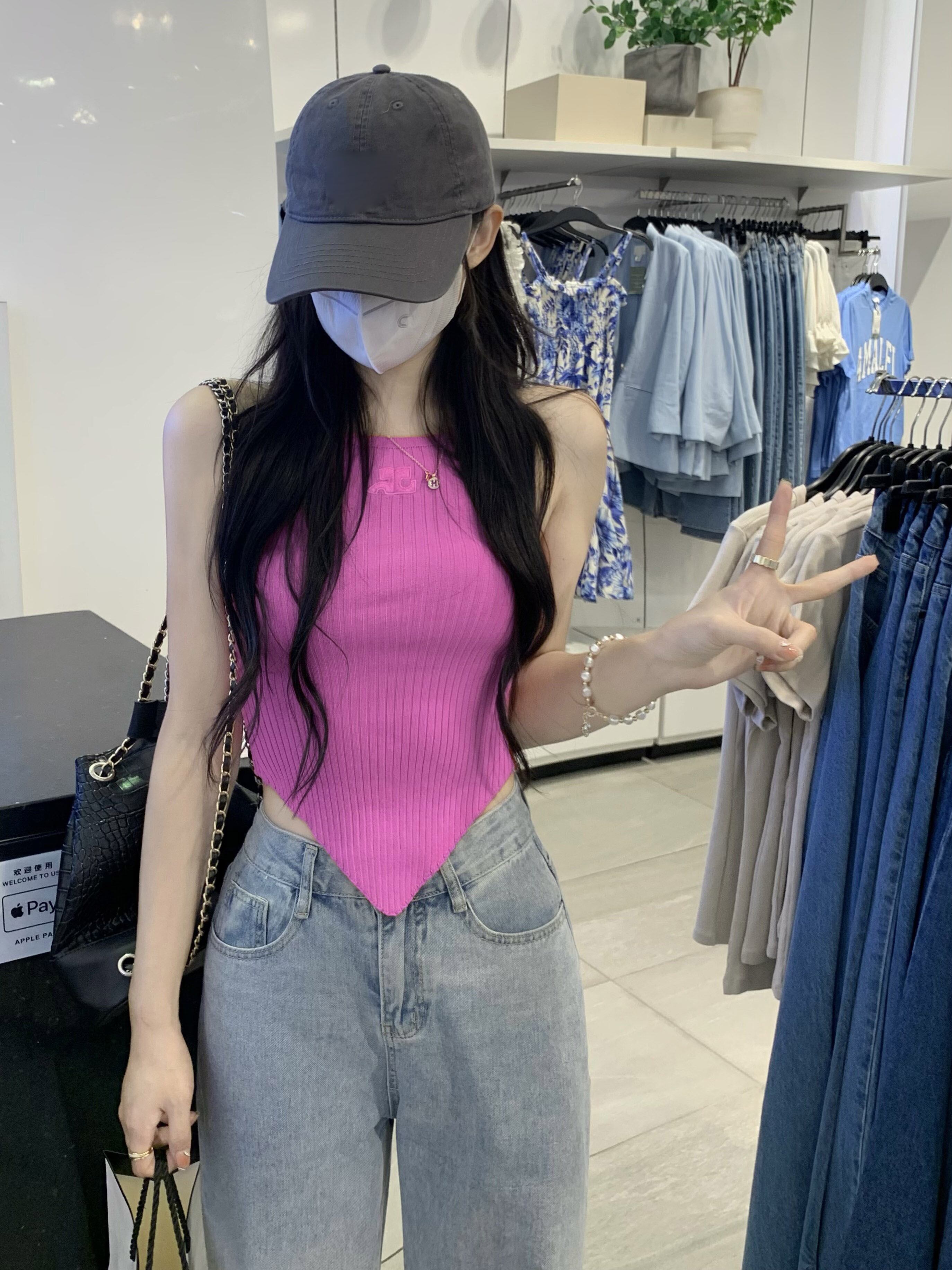 Summer niche design unique unique vest suspenders women's outer wear short irregular sleeveless top ショート サマー 夏物 ノースリーブ nana50687977801 | modepoisson