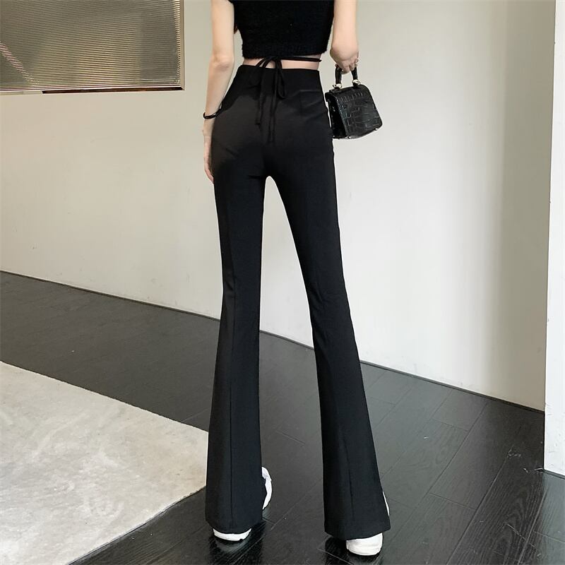 Black suit slit micro flared trousers women's summer 2022 new high waist slim straight casual pants ハイウェスト レッド ブラック カジュアル サマー 夏物 スリム nana41420802981 | modepoisson