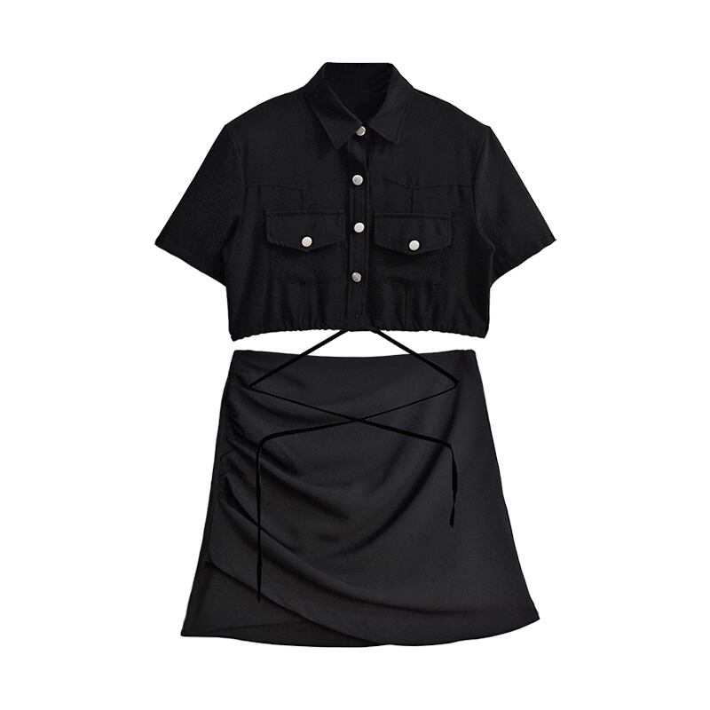Hepburn style two-piece suit 2022 summer new fashion tooling top bag hip skirt women's clothing サマー 夏物 スカート nana8201096923 | modepoisson