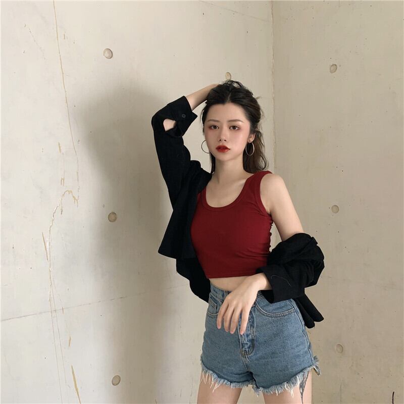 Vest summer outer wear fishbone design sense of niche French tight inner short sweet sleeveless top women's clothing ショート 大人ガーリー スウィート キュート カジュアル サマー 夏物 ノースリーブ nana26001965921 | modepoisson
