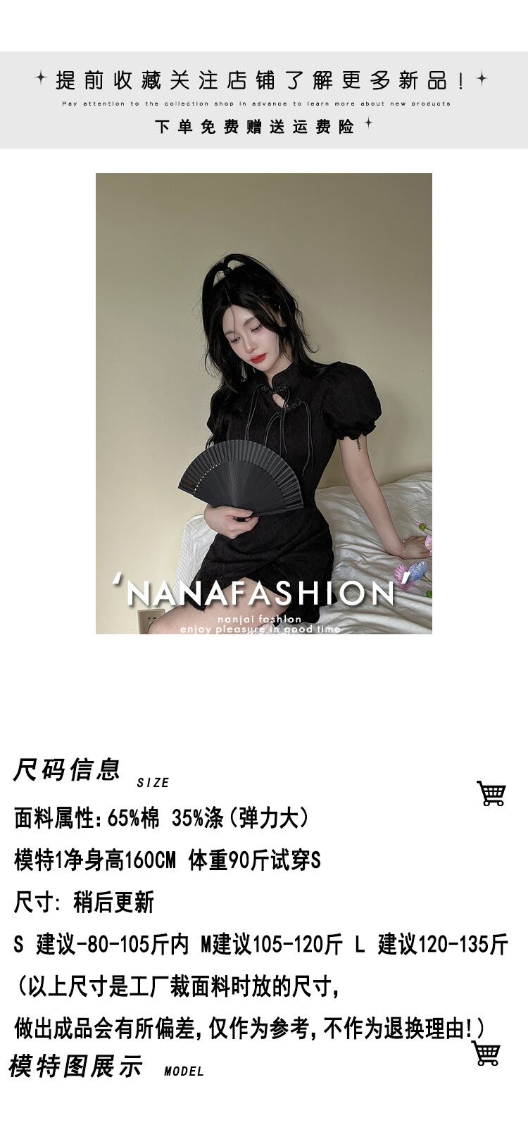 Chic sweet and spicy skirt waist 2022 summer new improved version temperament black cheongsam short-sleeved dress women ブラック 大人ガーリー スウィート キュート カジュアル サマー 夏物 スカート nana13486636836 | modepoisson