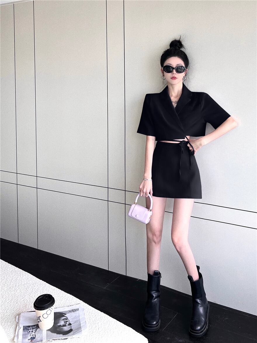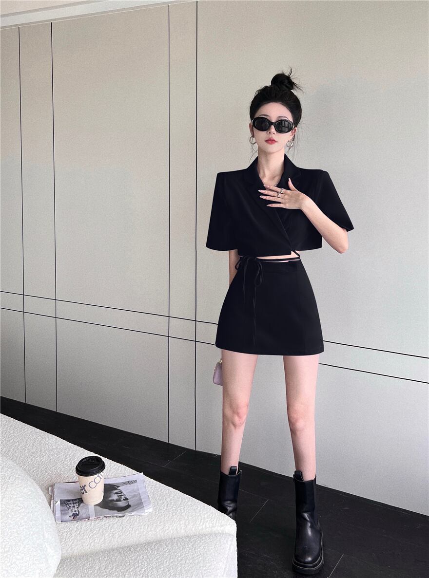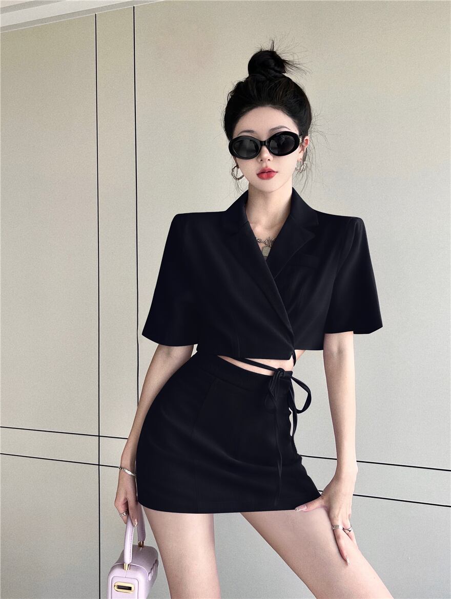 Suit skirt 2022 summer new sweet and spicy cool black suit jacket skirt small two-piece women's clothing ブラック 大人ガーリー スウィート キュート カジュアル サマー 夏物 スカート nana91760927496 | modepoisson