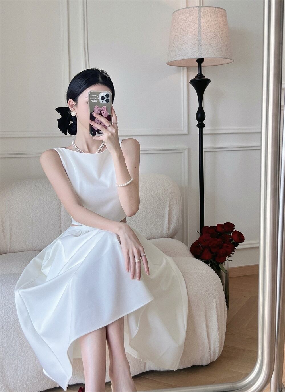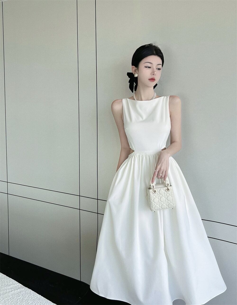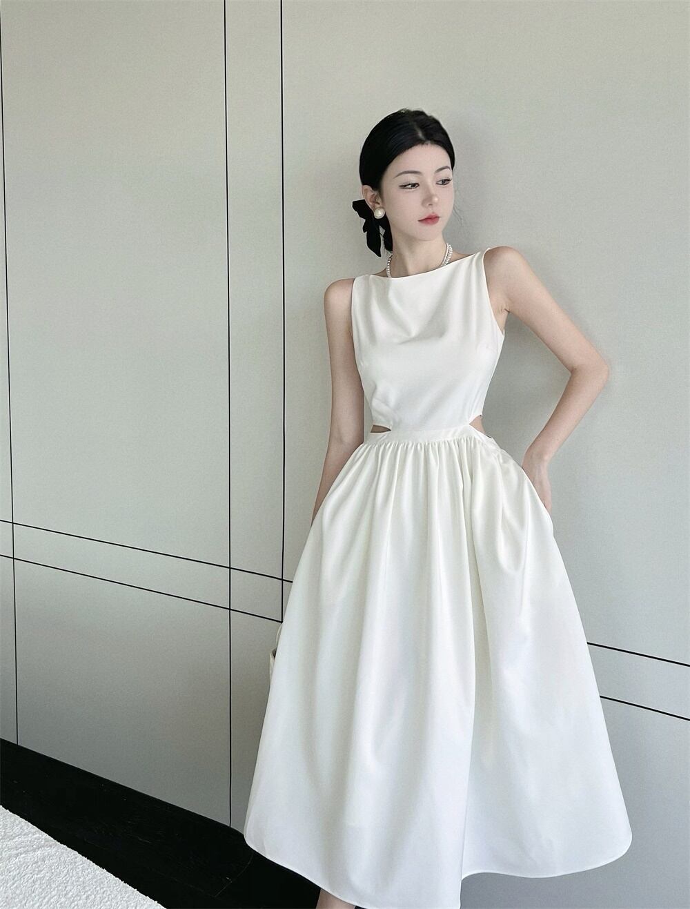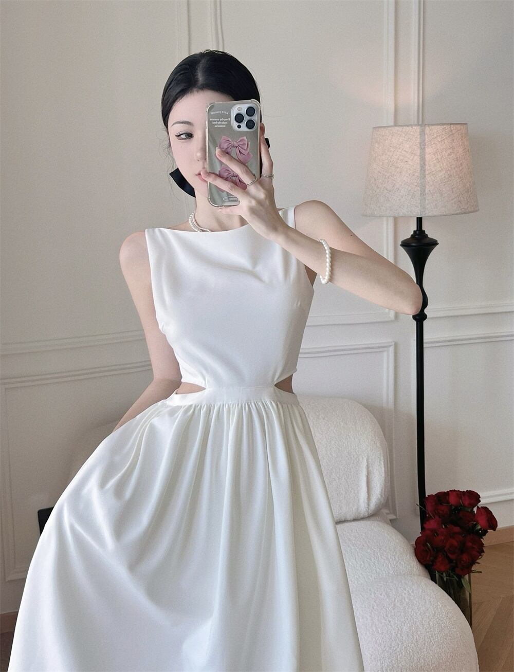 French Hepburn style one-shoulder off-waist sleeveless waist puffy dress summer new temperament long skirt women's clothing ロング サマー 夏物 ノースリーブ スカート nana75377451352 | modepoisson