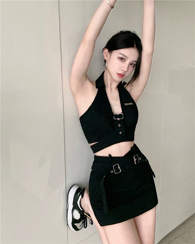 Hot suit women's 2022 summer new denim vest bag hip skirt small net red two-piece suit レッド サマー 夏物 スカート nana16773675587 | modepoisson