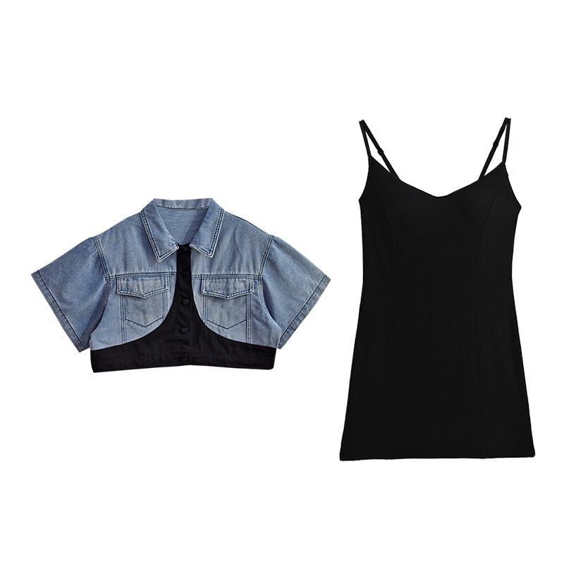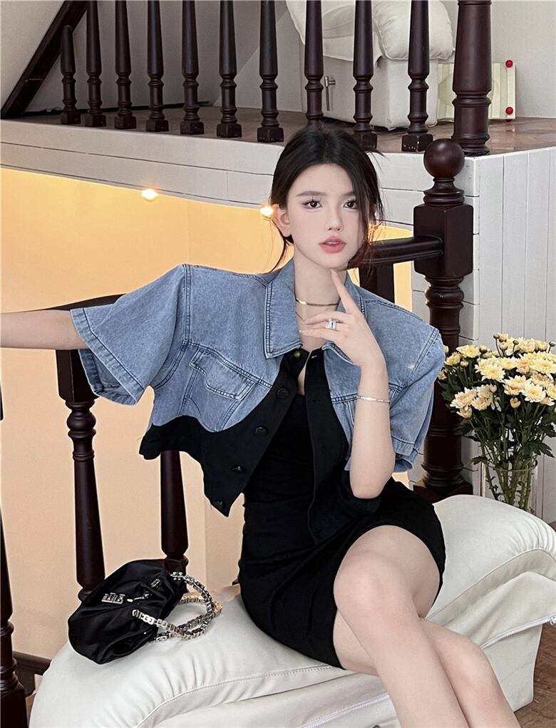 Pure desire package hip dress sweet and cool denim short-sleeved jacket summer new royal sister light cooked Hong Kong flavor two-piece suit female 大人ガーリー スウィート キュート カジュアル サマー 夏物 nana20856168531 | modepoisson