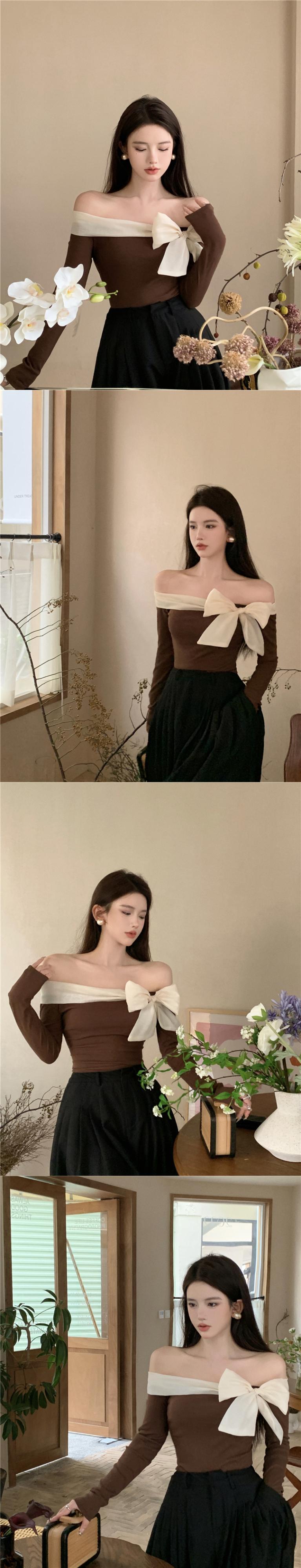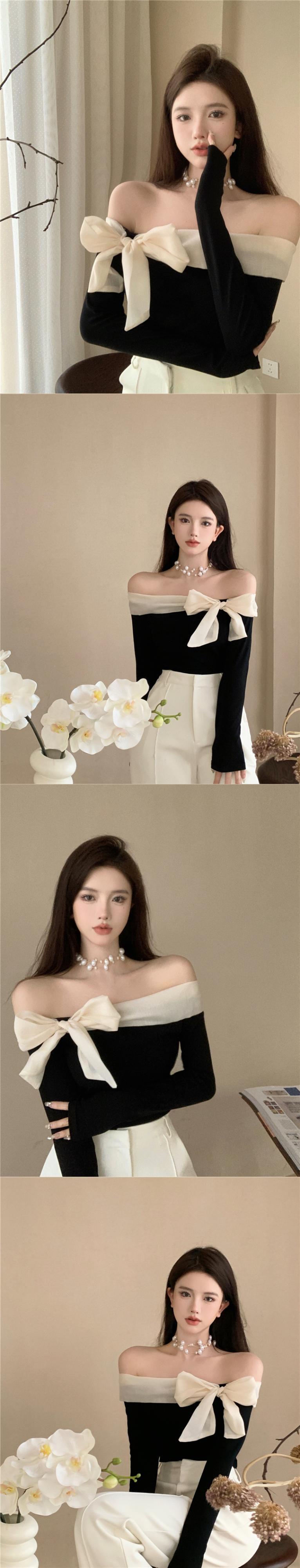Long-sleeved t-shirt women's 2022 autumn new design niche one-shoulder French chic unique waist top ロング オータム 秋物 Tシャツ nana33102921743 | modepoisson