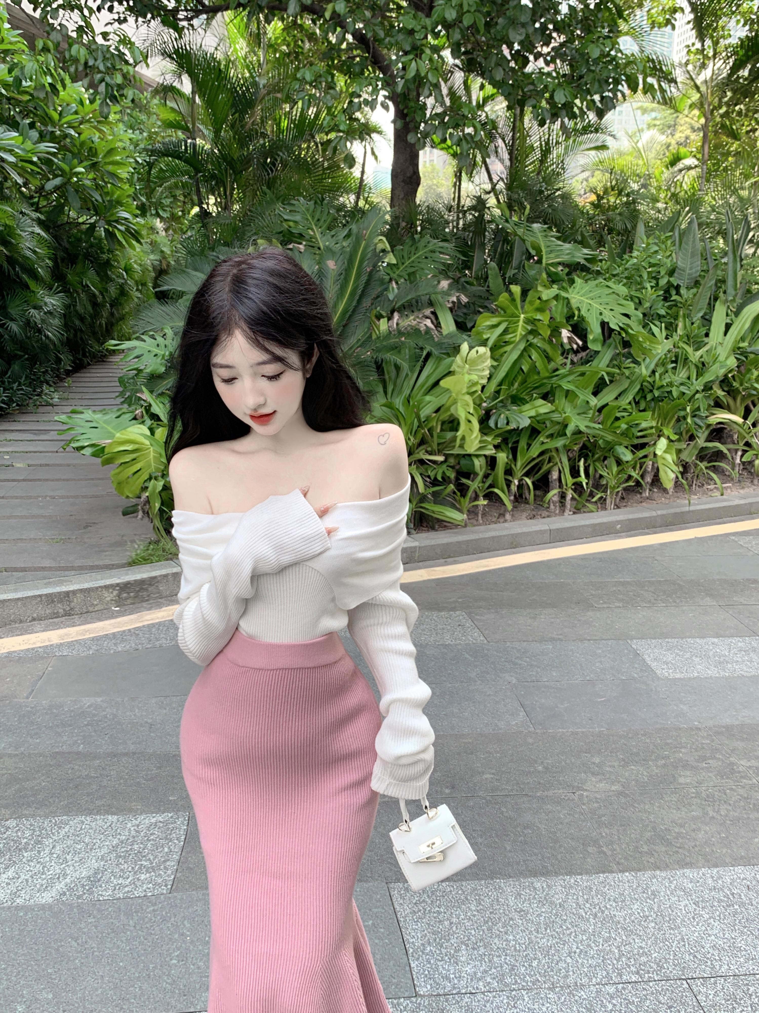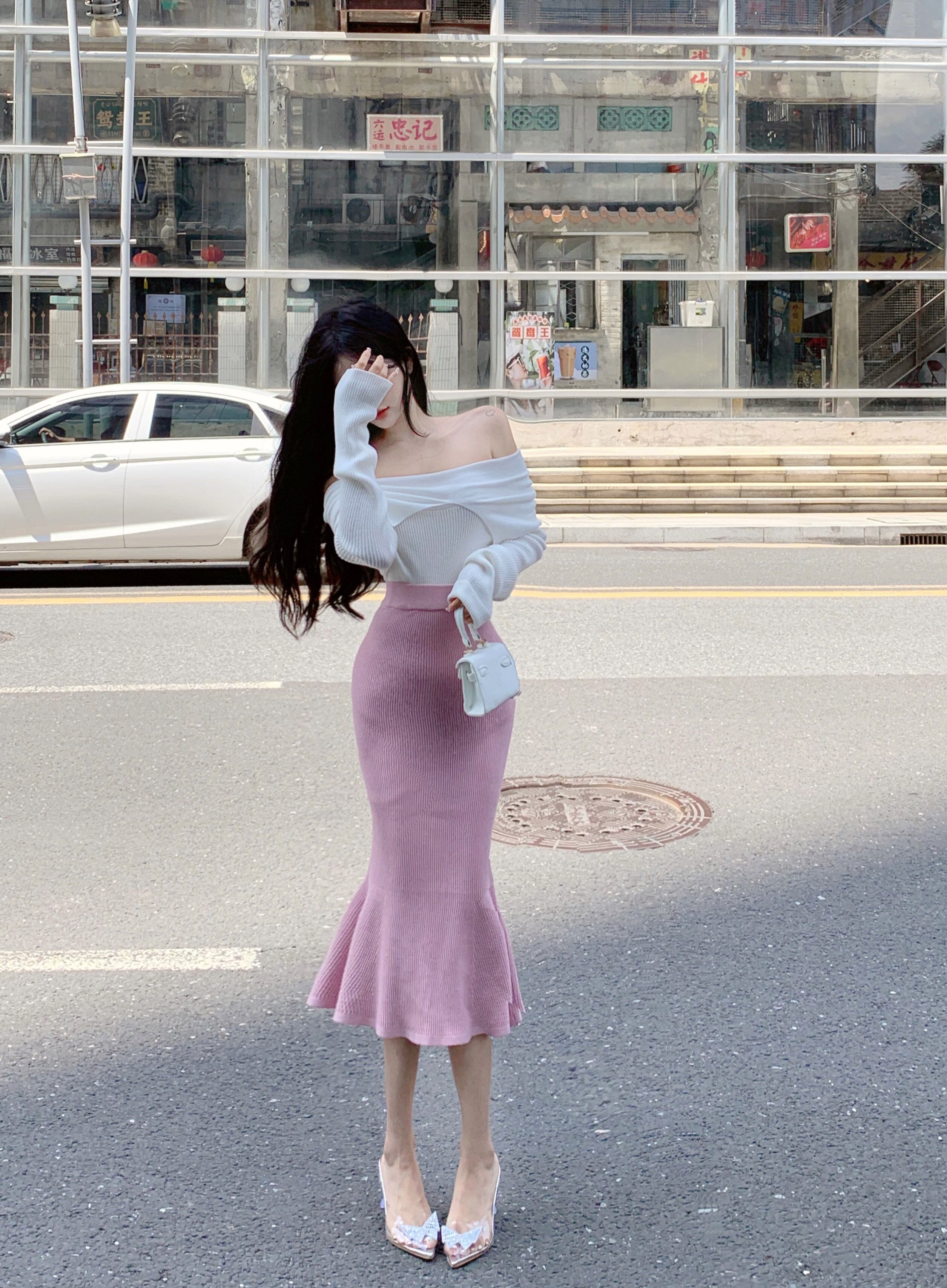 Salt series ladies suit female 2022 autumn new long-sleeved knitted sweater high waist split fishtail skirt two-piece set ハイウェスト ロング オータム 秋物 スカート nana51921569443 | modepoisson