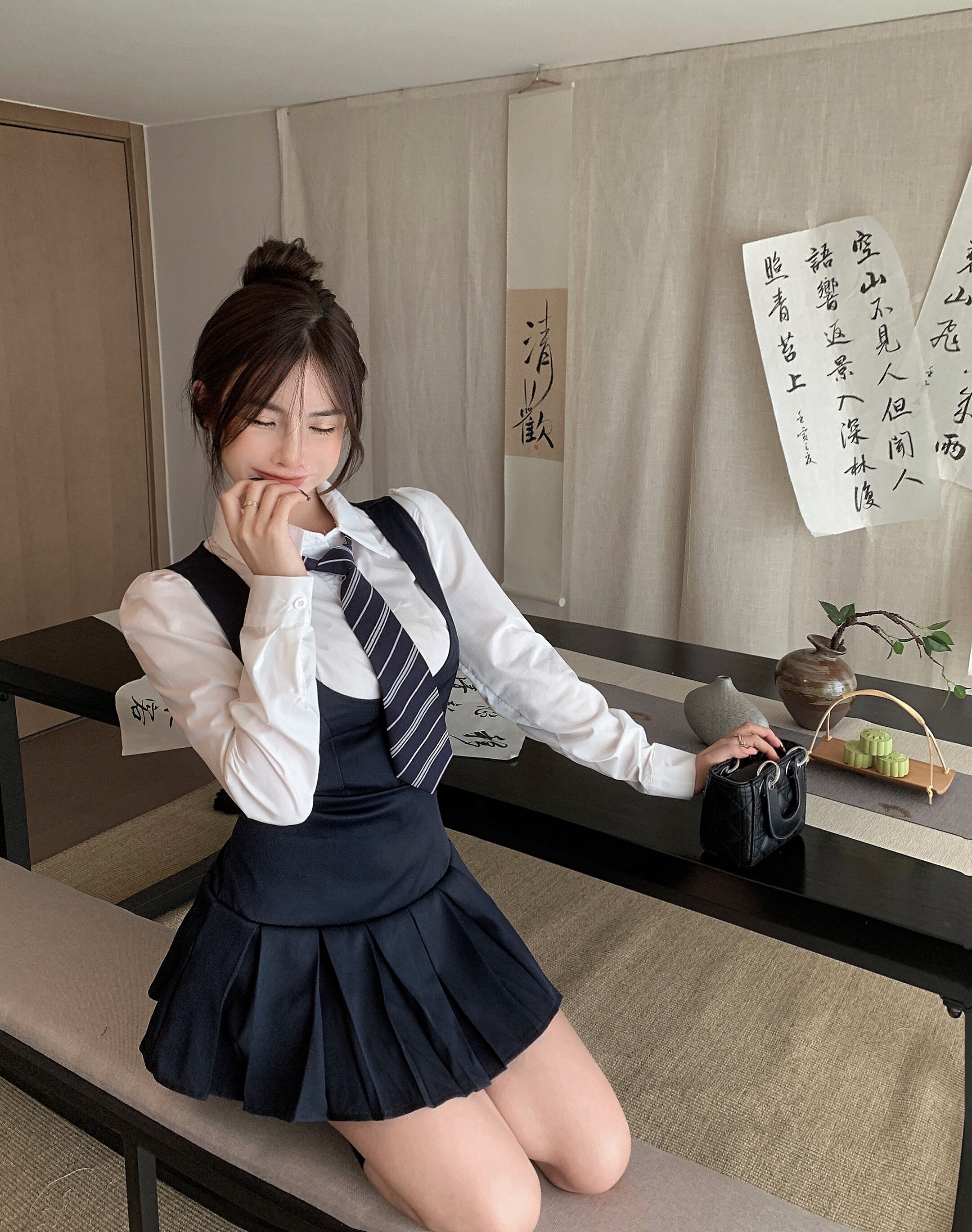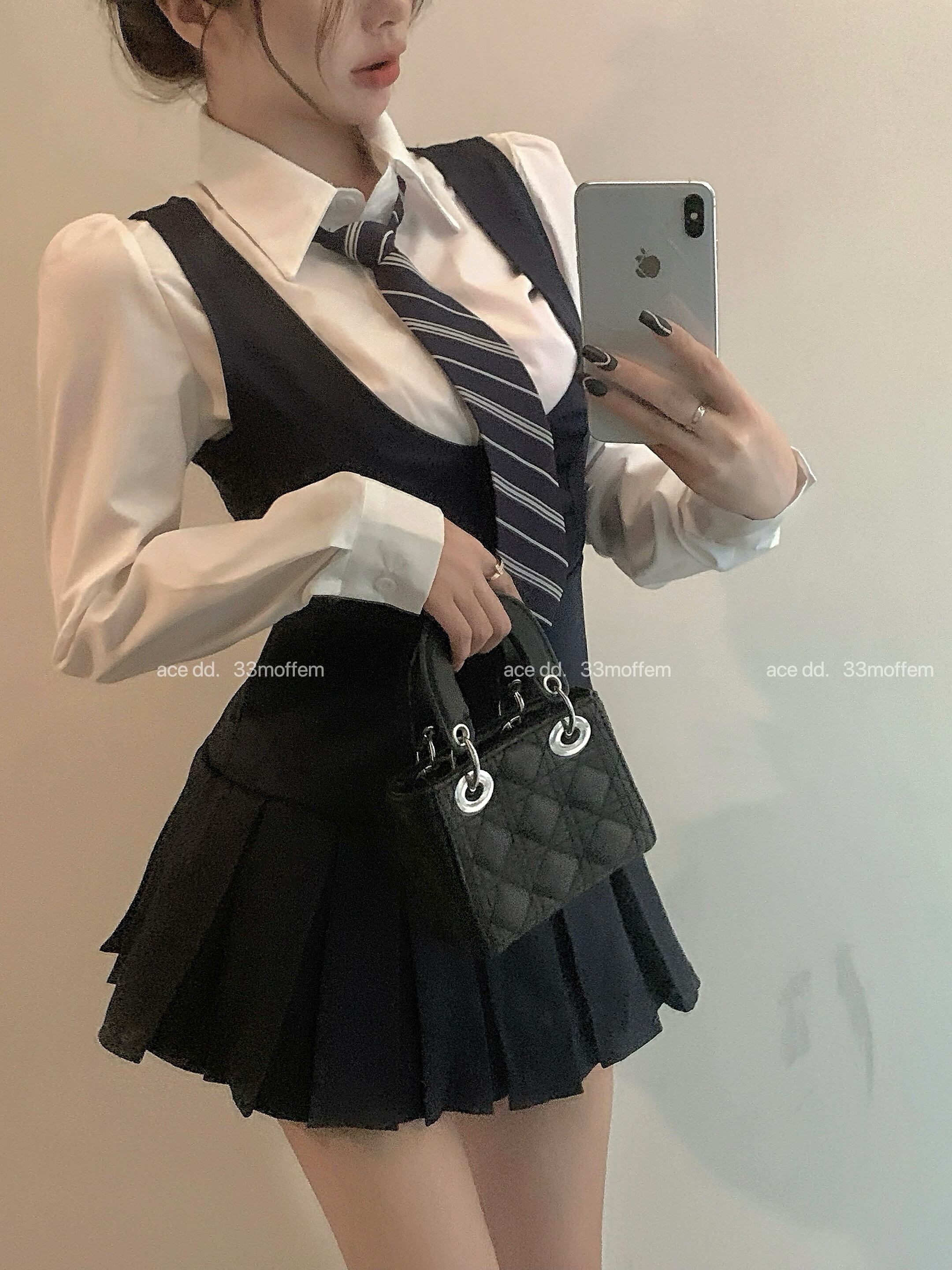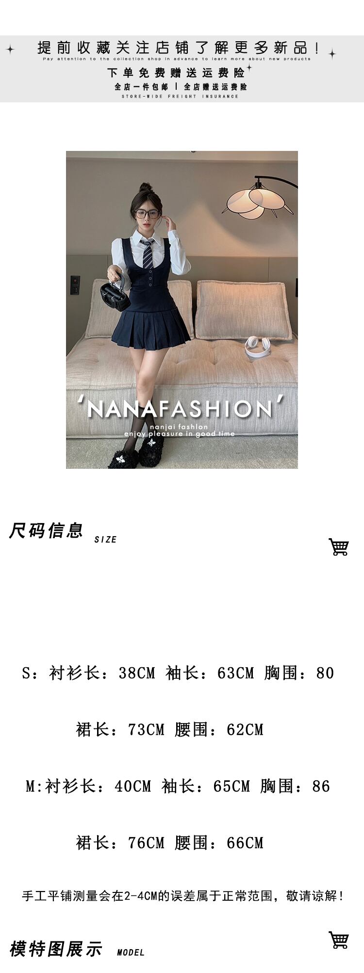 Autumn jk college style suit female 2022 new fashion temperament white shirt top suspenders pleated skirt ホワイト プリーツ オータム 秋物 スカート nana84196981067 | modepoisson