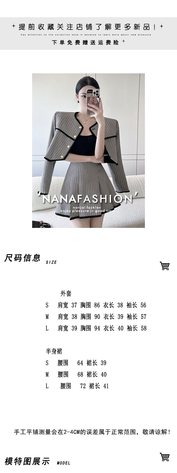 Hepburn style suit two-piece skirt women's autumn fashion ladies temperament small fragrance style short coat pleated skirt ショート プリーツ オータム 秋物 スカート nana12302080616 | modepoisson