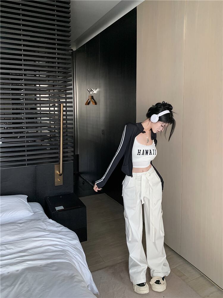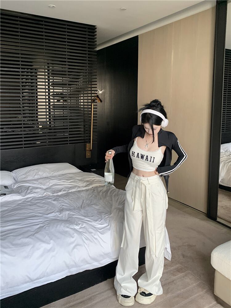 Long-sleeved cardigan, short coat, camisole, high-waist casual, wide-leg pants, high-end autumn fashion, three-piece suit, female ショート ロング カジュアル カーディガン オータム 秋物 nana86328917535 | modepoisson