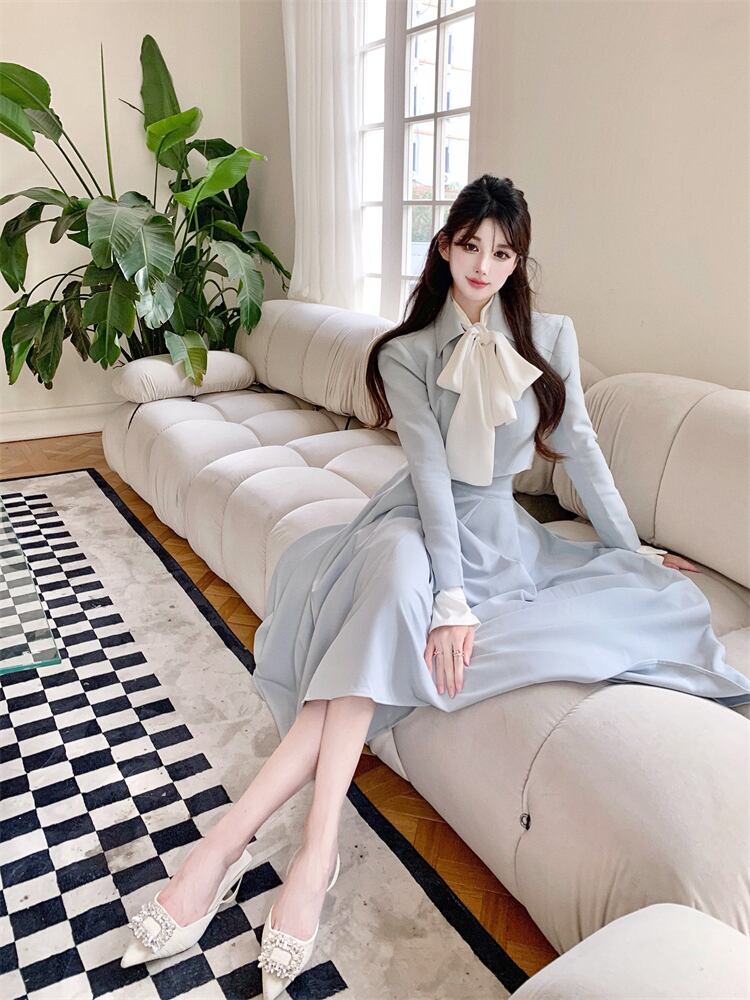 Xiaoxiangfeng autumn 2022 new suit jacket bow shirt long skirt goddess fan suit skirt ロング リボン オータム 秋物 スカート nana10378964697 | modepoisson