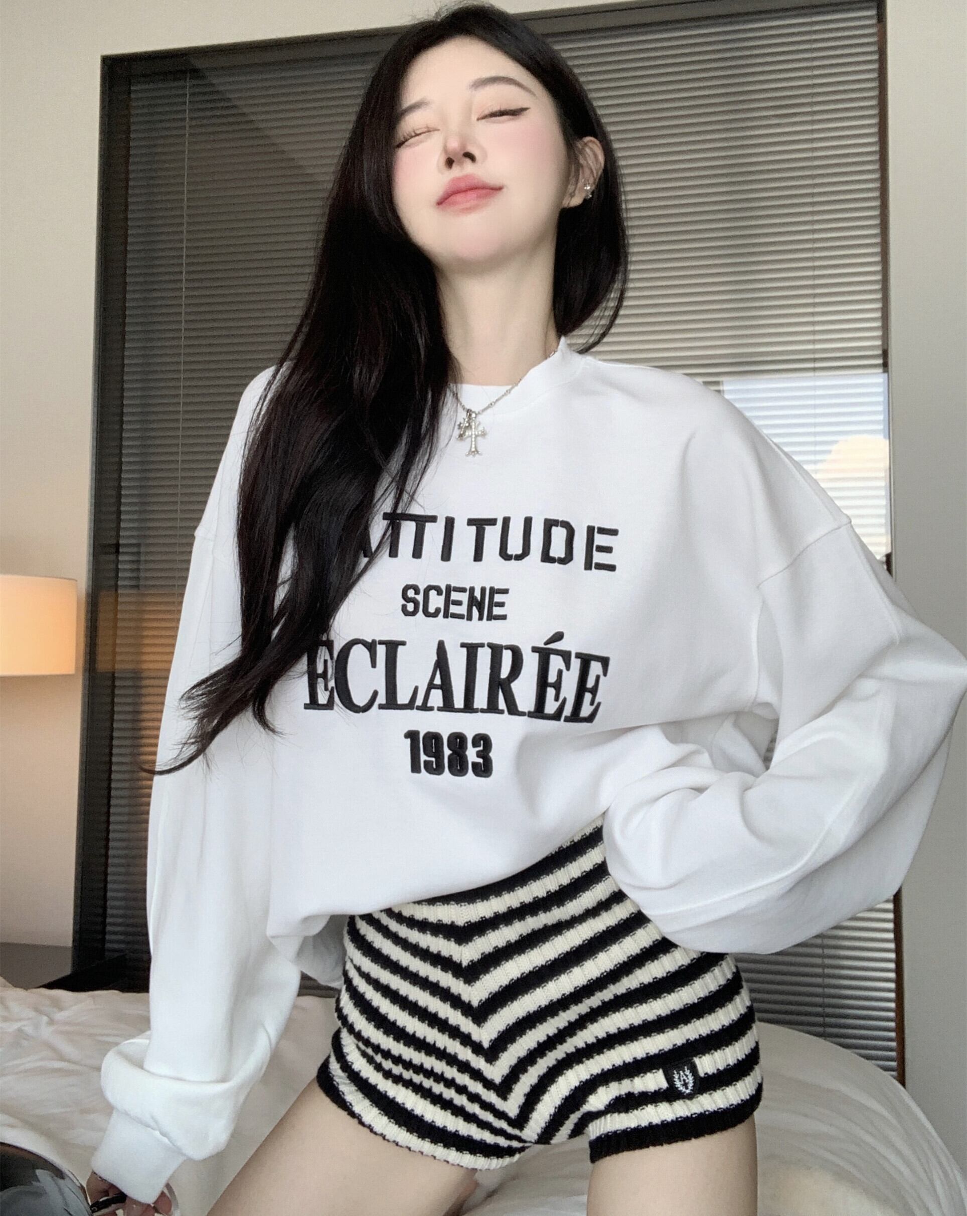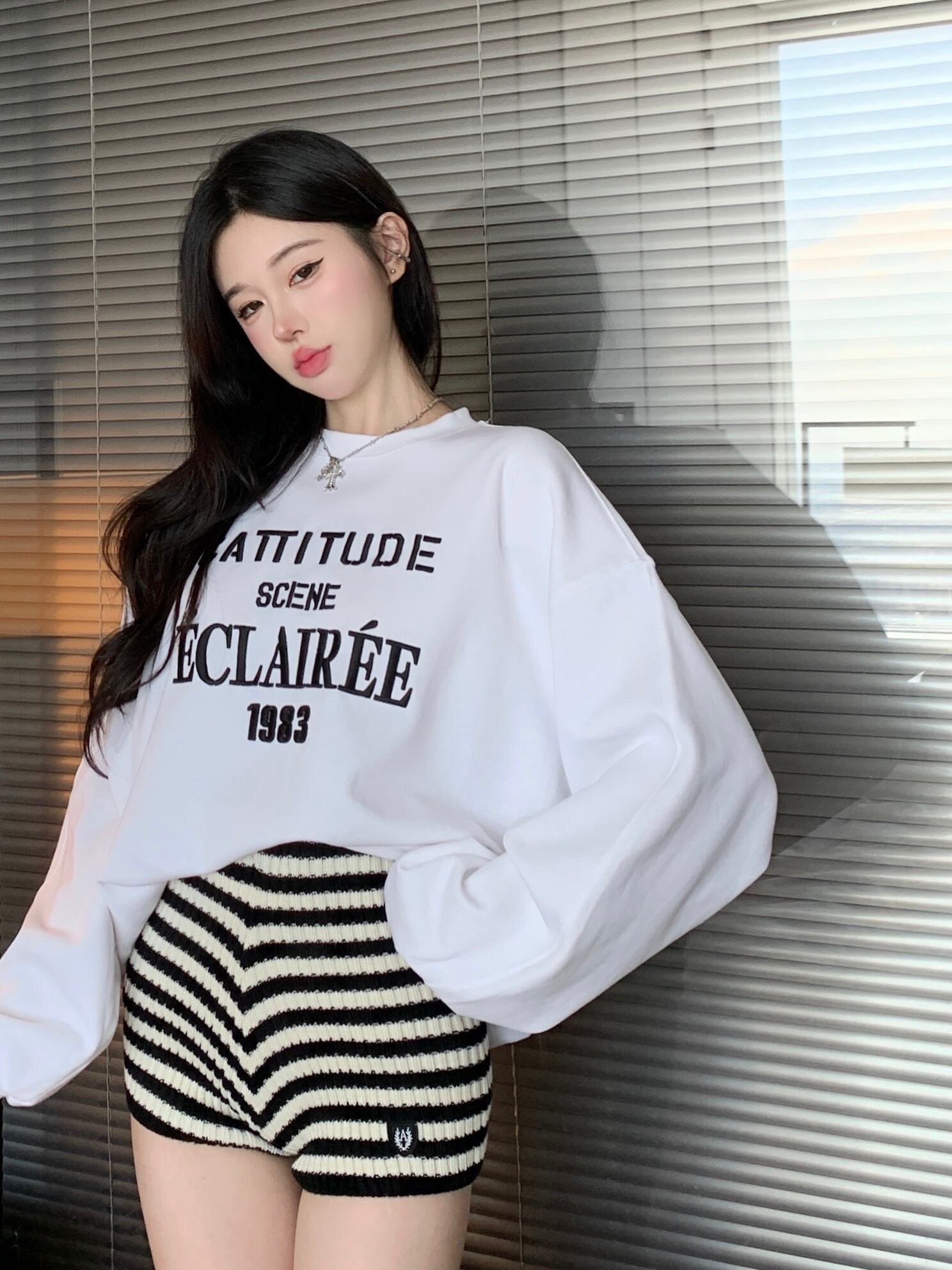 Sports suit 2022 autumn new fashion temperament sweater striped knitted shorts two-piece women's clothing オータム 秋物 ショーツ ブルマー ストライプ nana69094530396 | modepoisson