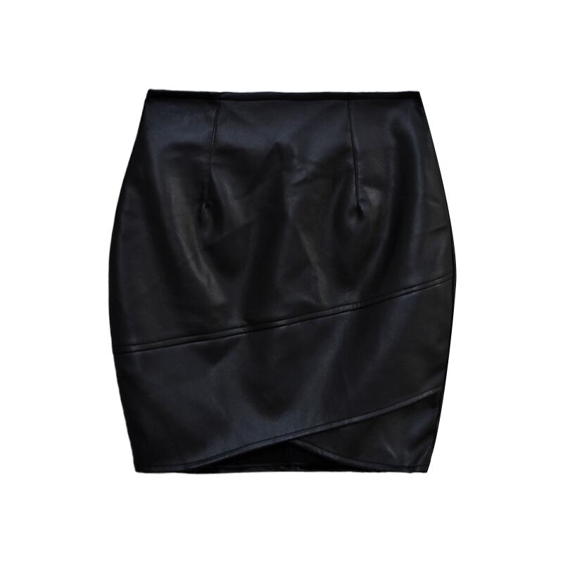 Black high-waisted a-line skirt 2022 autumn new style package hip design small irregular pu leather skirt women ブラック オータム 秋物 レザー スカート Aライン nana15376869461 | modepoisson