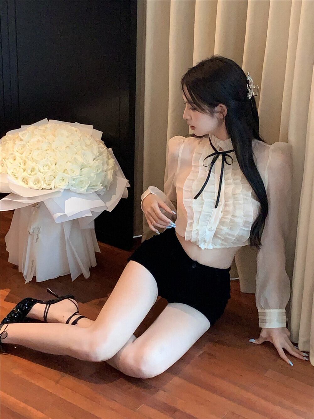Salt series wear two-piece suit autumn 2022 new fashion ladies temperament shirt high waist thin shorts women's clothing ハイウェスト オータム 秋物 ショーツ ブルマー nana43953416498 | modepoisson