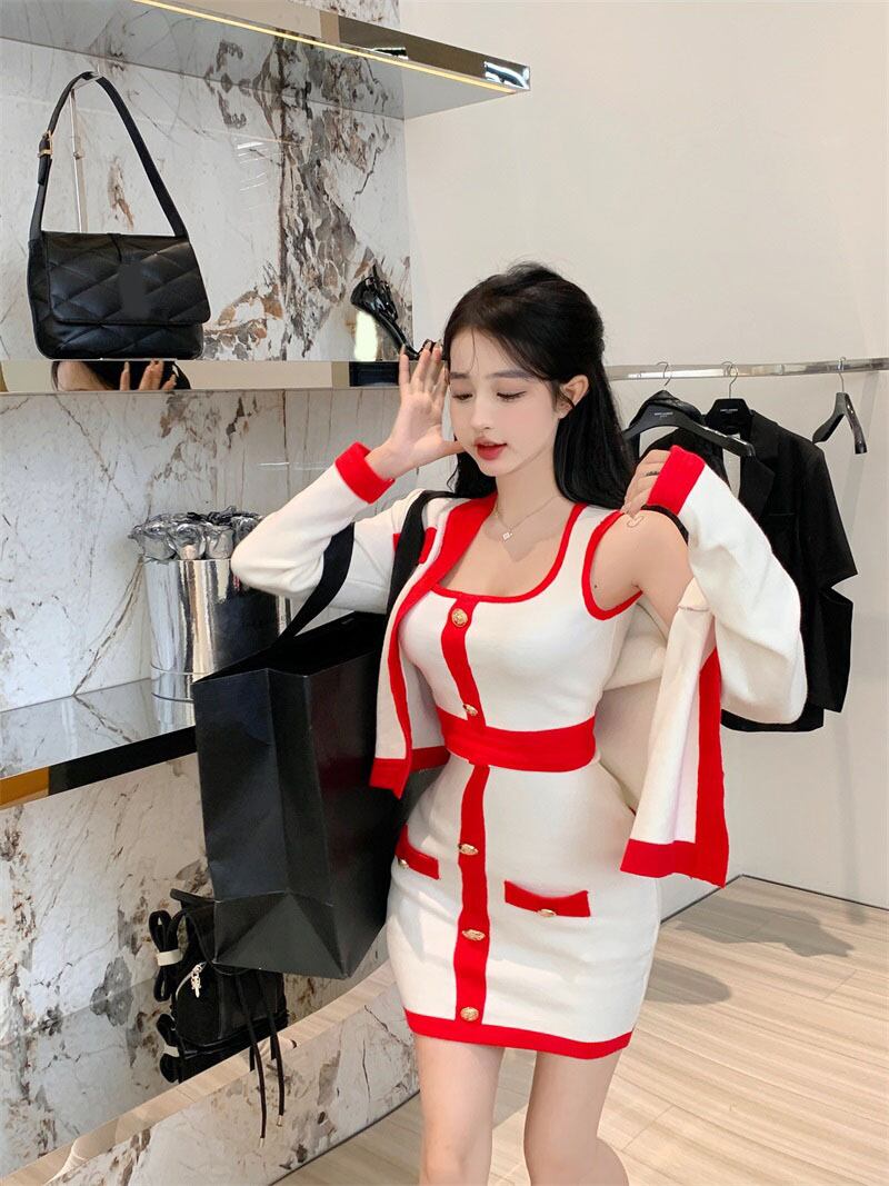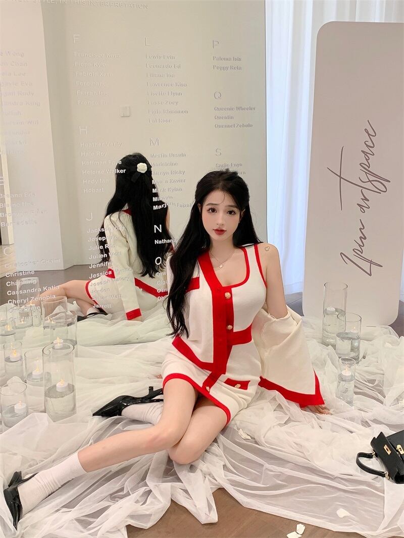 Xiaoxiangfeng fashion ladies temperament two-piece suit female 2022 autumn new vest dress cardigan short coat ショート カーディガン オータム 秋物 nana42181411421 | modepoisson