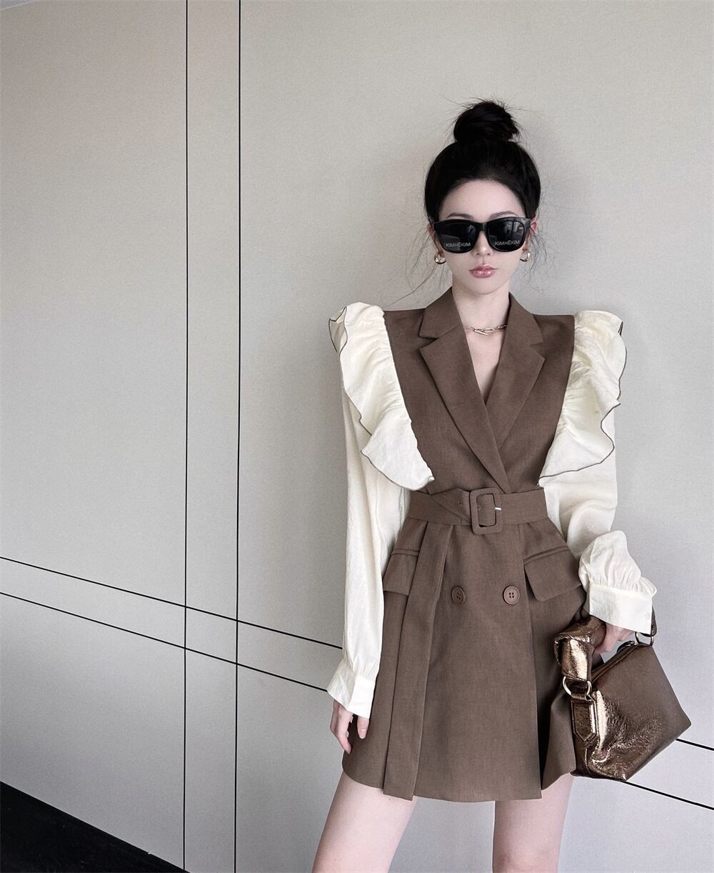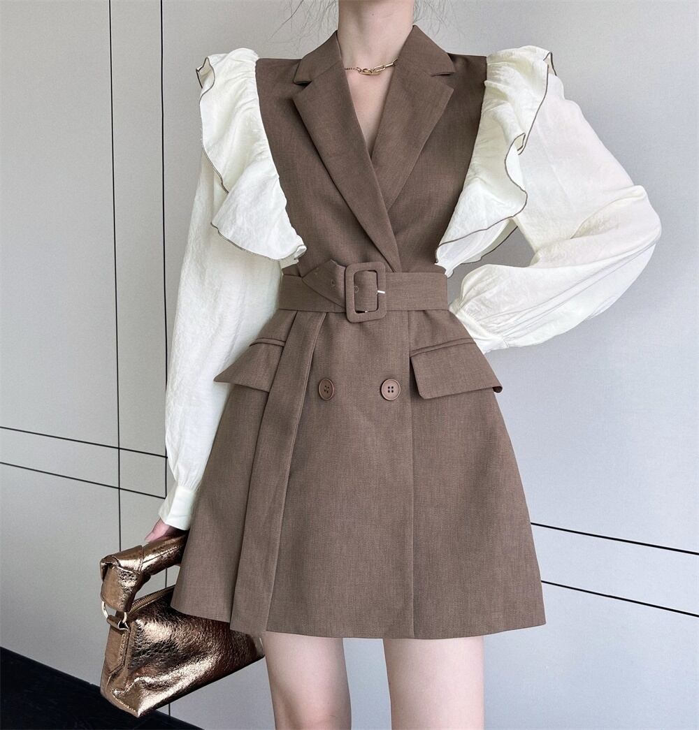 -end lady temperament long-sleeved skirt 2022 early autumn new French style waist slim suit dress women ロング オータム 秋物 スカート スリム nana94821121335 | modepoisson