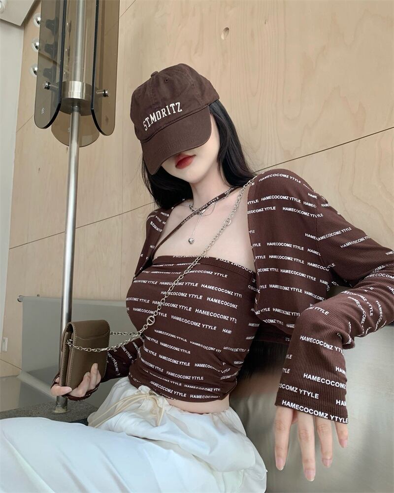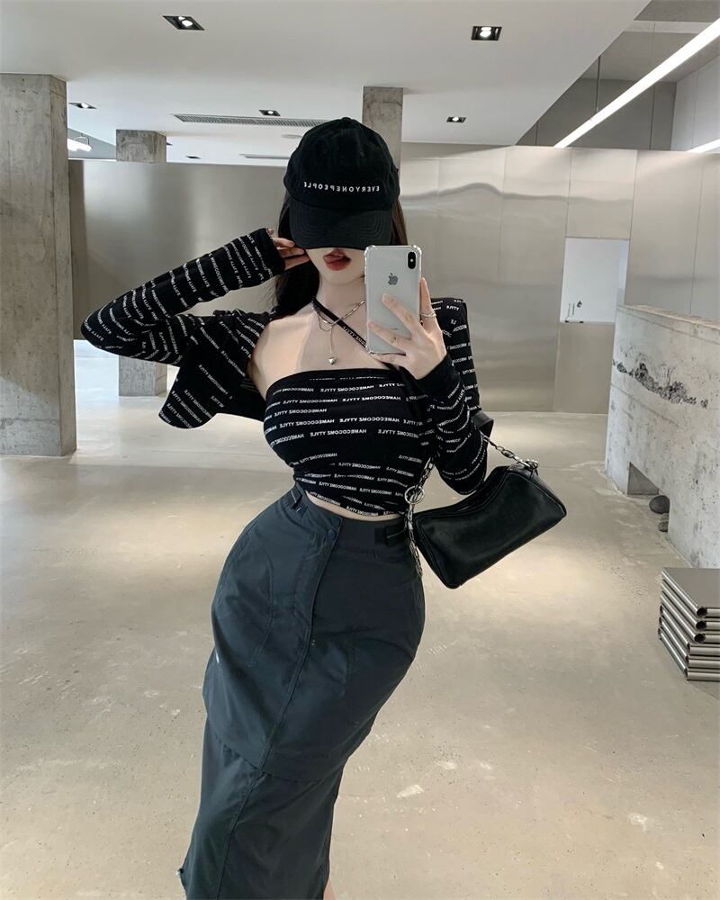 Hot suit 2022 autumn new fashion pure desire tube top camisole short cardigan top two-piece set women ショート カーディガン オータム 秋物 ピュア nana74882449103 | modepoisson