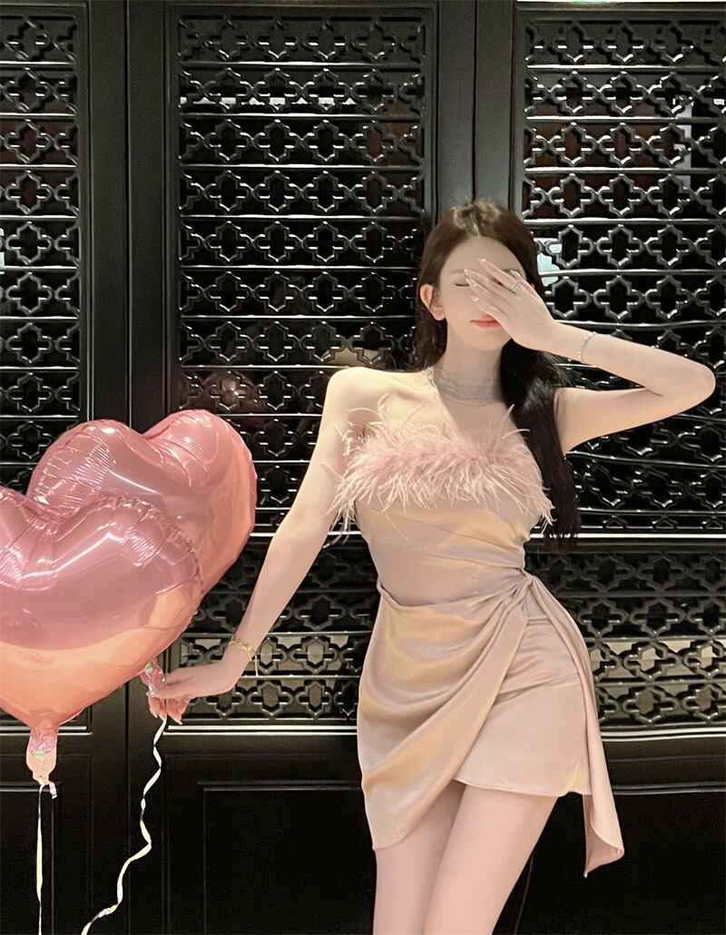 French high-end sense royal sister ladies temperament tube top skirt early autumn sexy chic one-shoulder slim dress female オータム 秋物 スカート スリム nana56301297192 | modepoisson