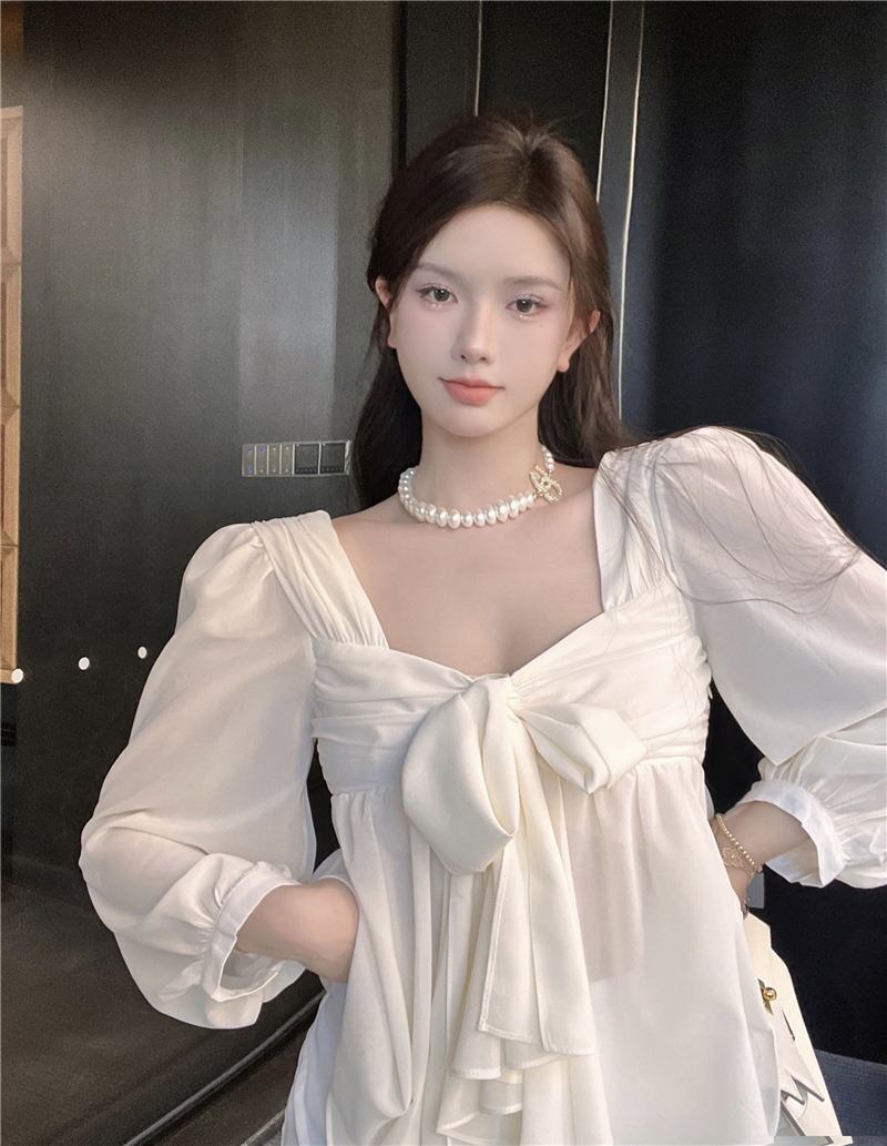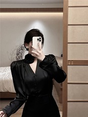 Long-sleeved shirt women's 2022 early autumn new design small French chic unique v-neck temperament top ロング オータム 秋物 Vネック nana32866514130 | modepoisson