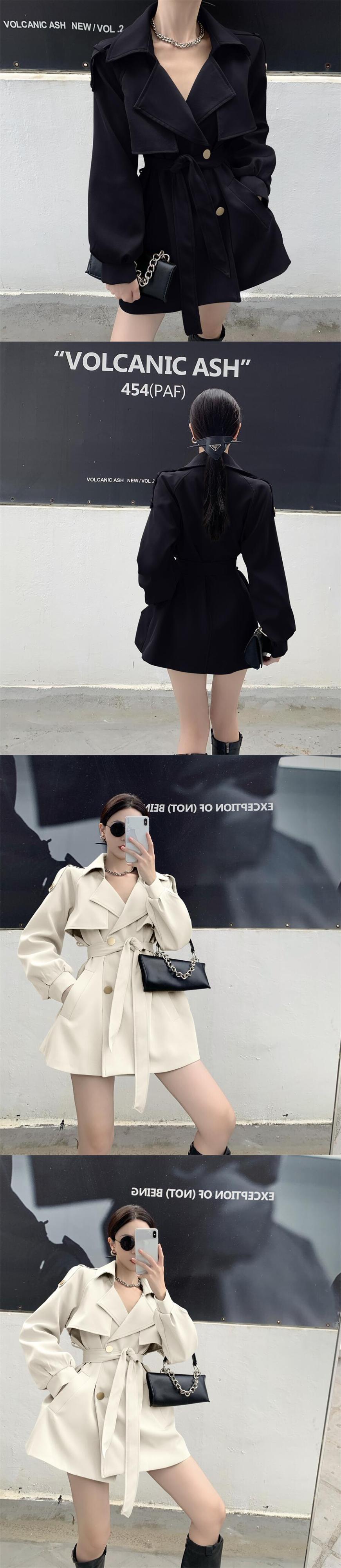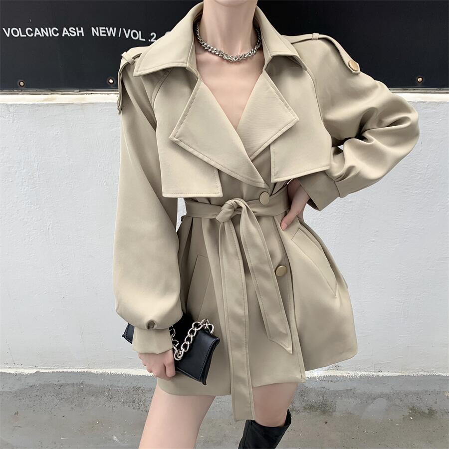 2022 early autumn new Hong Kong style retro lantern sleeve double-breasted waist short small windbreaker coat women's clothing ショート ランタンスリーブ レトロ オータム 秋物 nana42645025628 | modepoisson