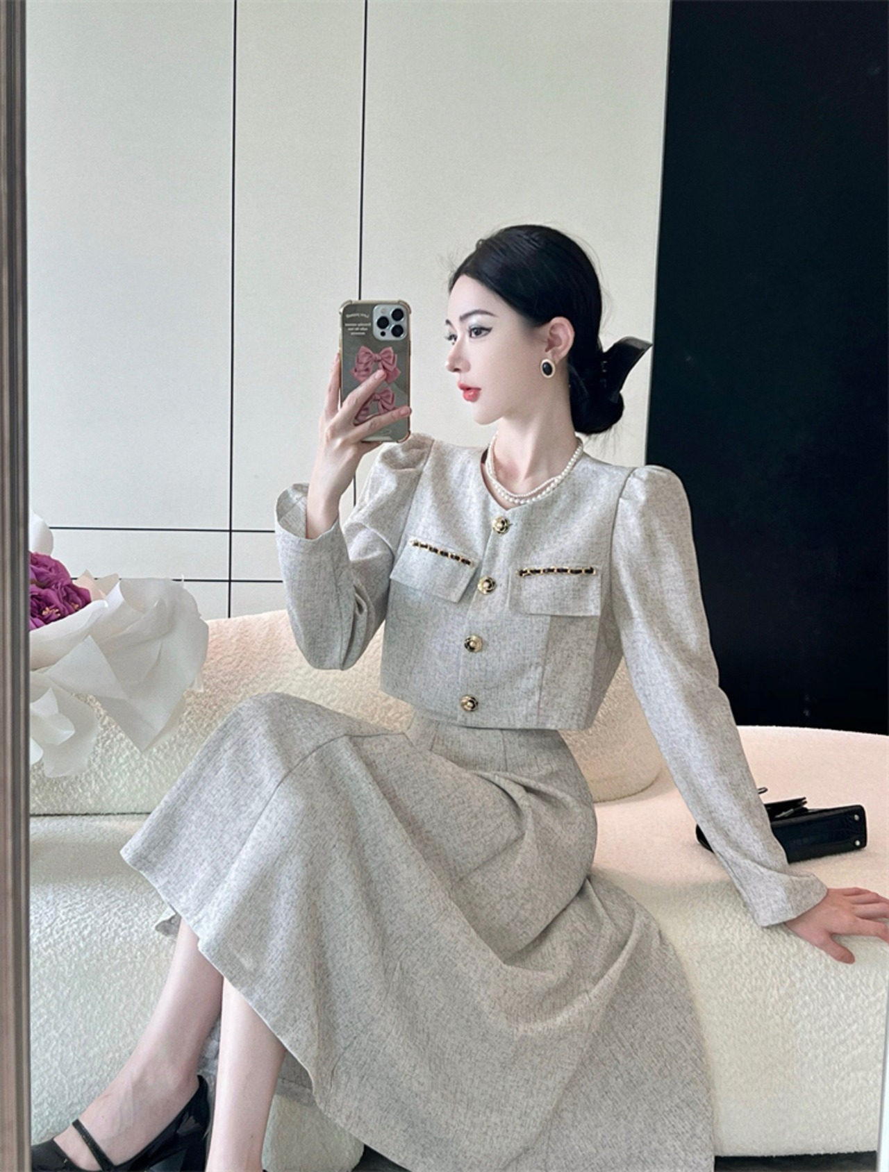able ladies temperament small fragrance two-piece suit women's 2022 early autumn new short coat shows thin half-length skirt ショート オータム 秋物 スカート nana27556025210 | modepoisson