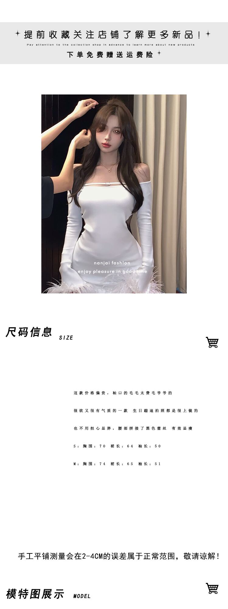 French one-shoulder ostrich hair dress women's 2022 early autumn new temperament ladies dress white skirt ホワイト オータム 秋物 スカート nana84422886395 | modepoisson