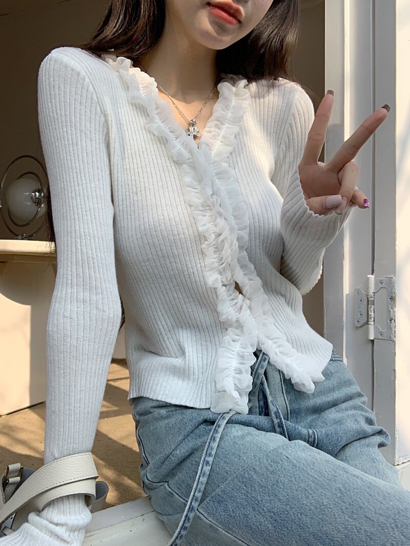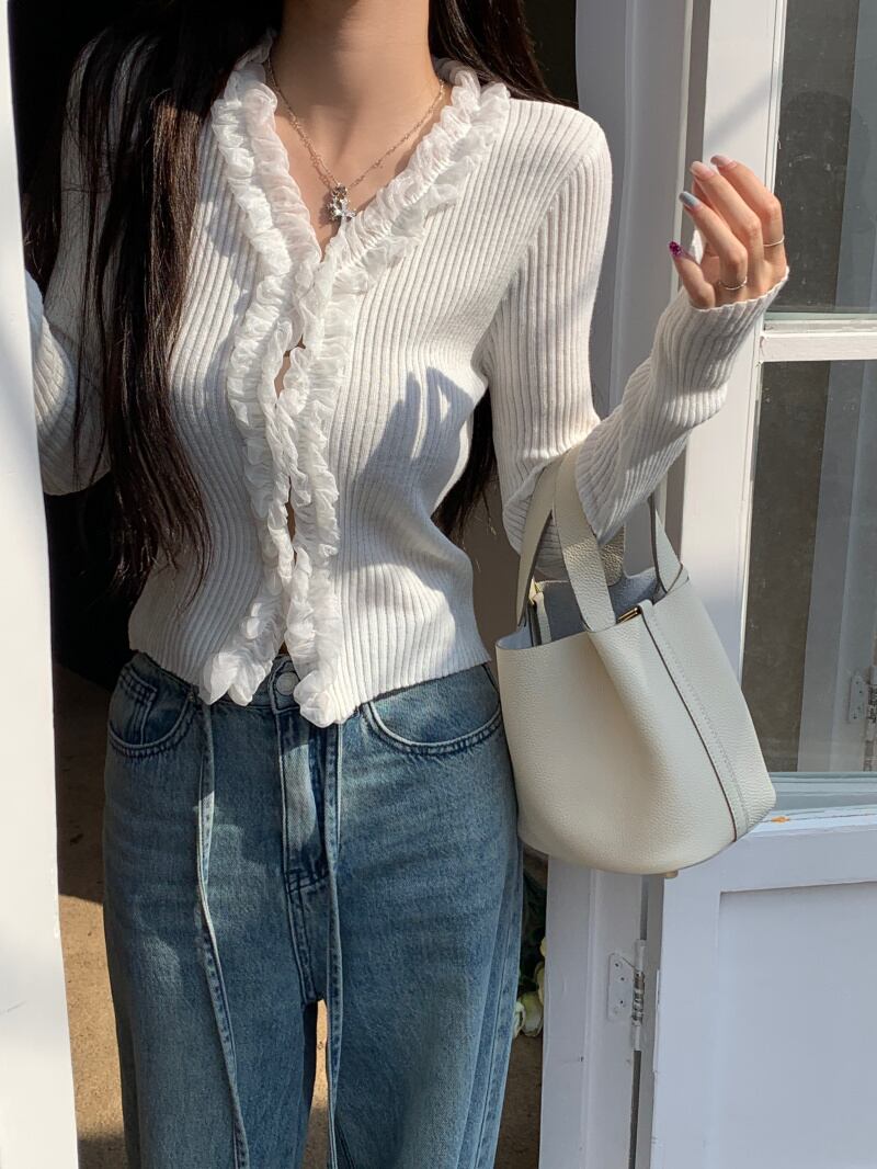 French retro Hepburn cardigan top women's autumn new design niche short section slim slim knitted sweater women ショート レトロ カーディガン オータム 秋物 スリム nana74374996054 | modepoisson