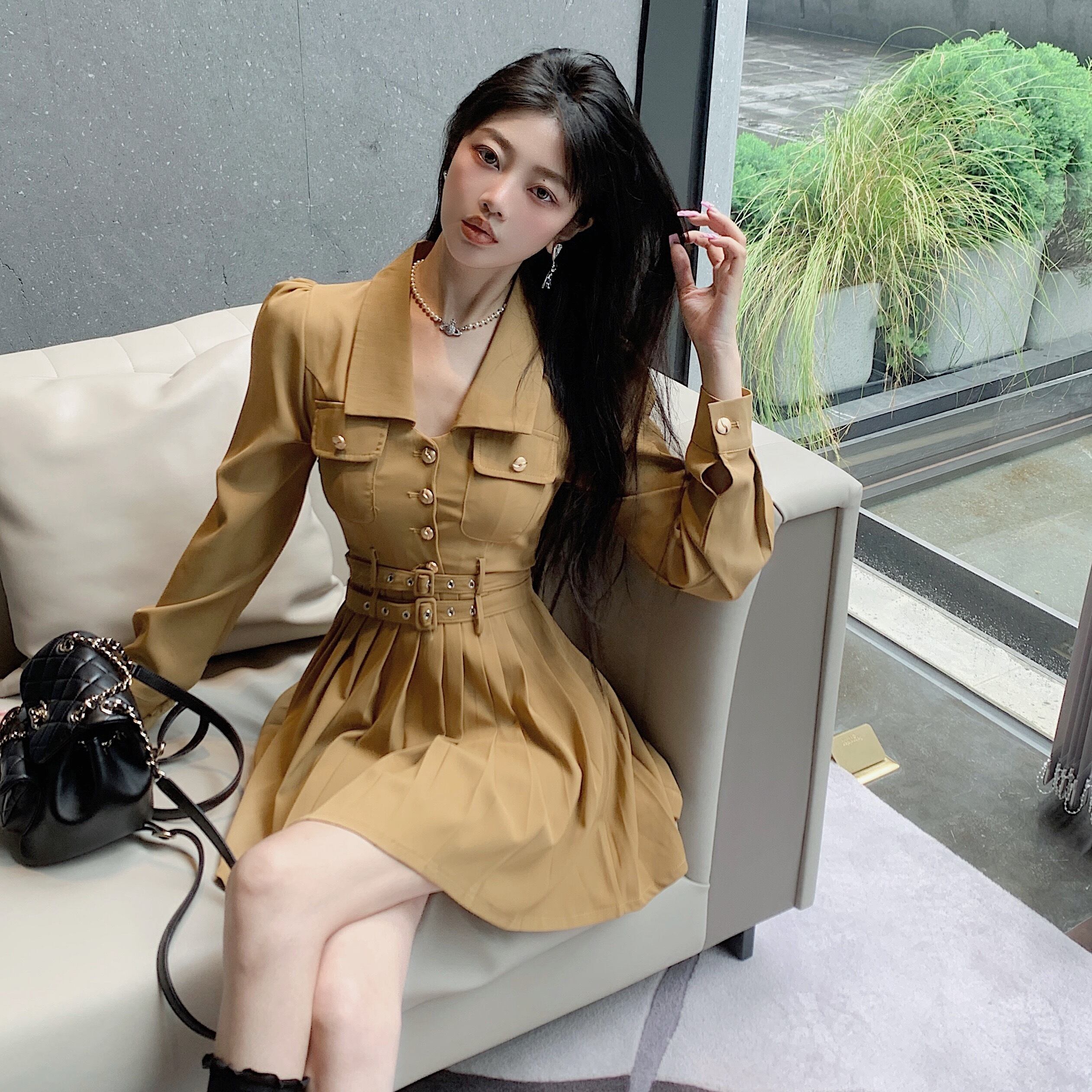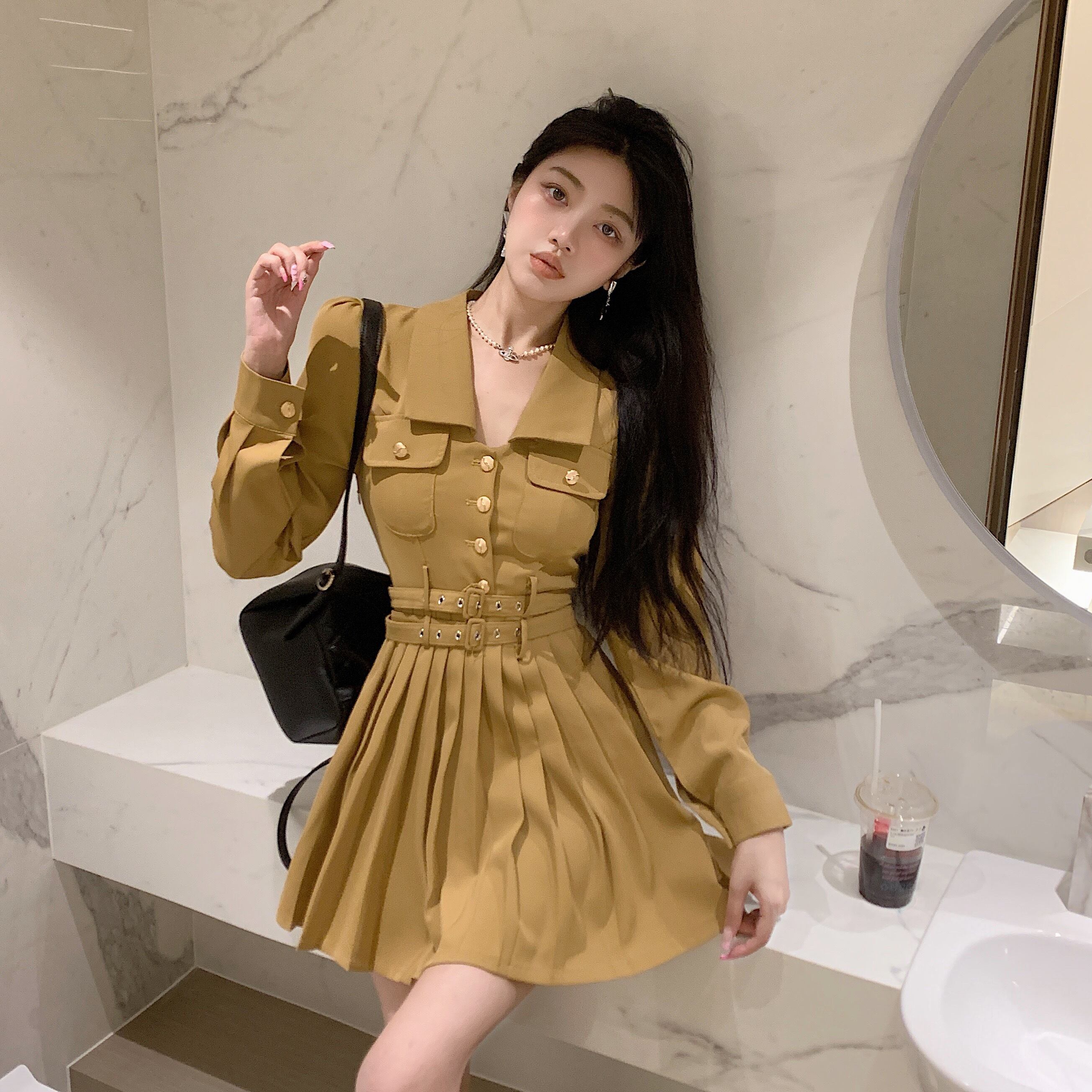 Long sleeve waist slim pleated dress 2022 early autumn new French temperament small skirt women's clothing ロング 長袖 プリーツ オータム 秋物 スカート スリム nana29861078709 | modepoisson