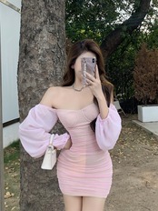 Long-sleeved dress women's clothing 2022 autumn new French ladies temperament square collar slim fit and pure desire skirt ロング オータム 秋物 スカート スリム ピュア スクウェア nana61587000842 | modepoisson