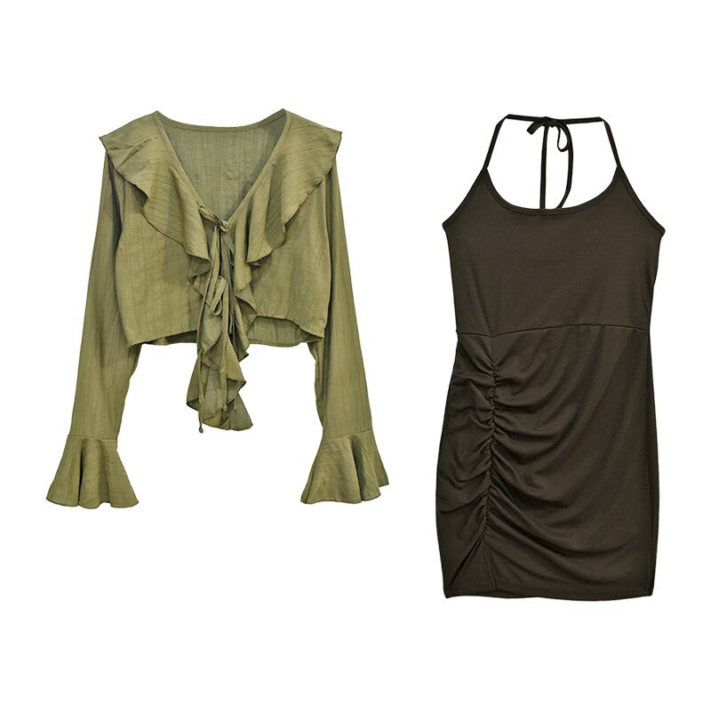 2022 early autumn new fashion halter neck suspender dress ruffled shirt high-end two-piece suit women オータム 秋物 nana92769480804 | modepoisson