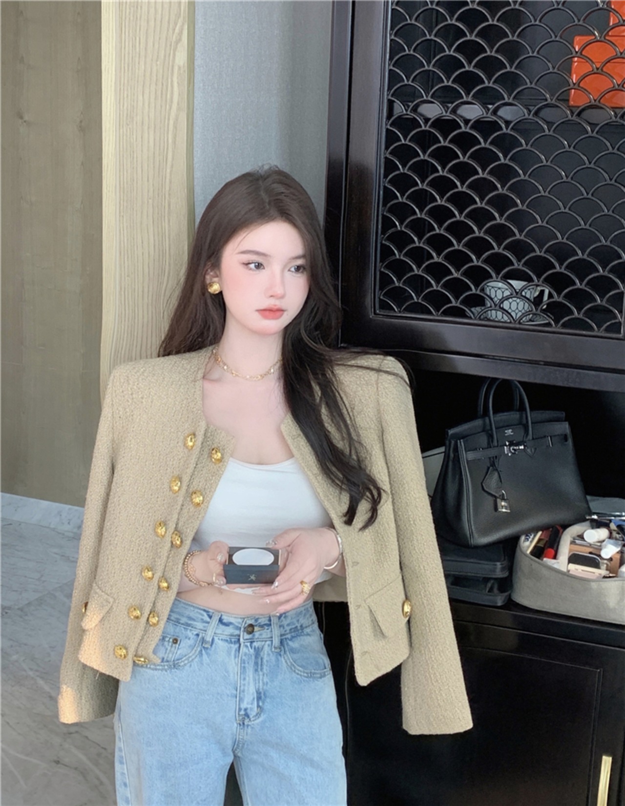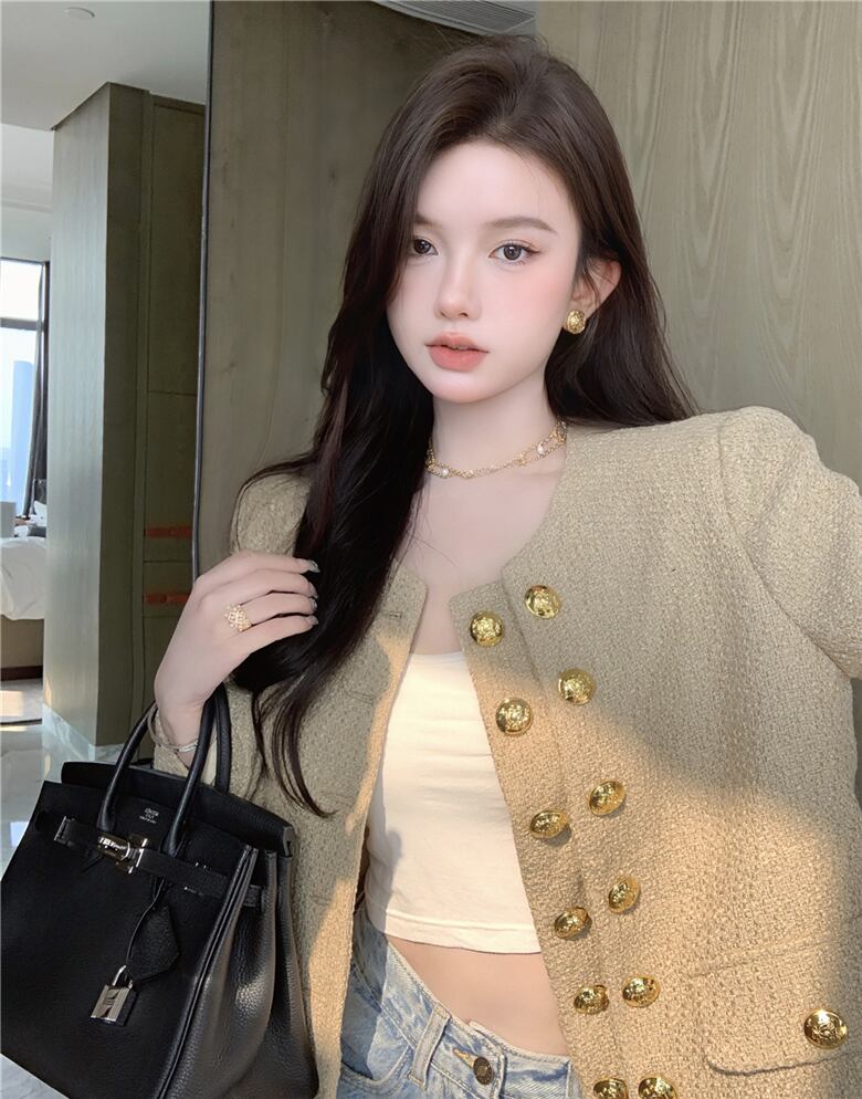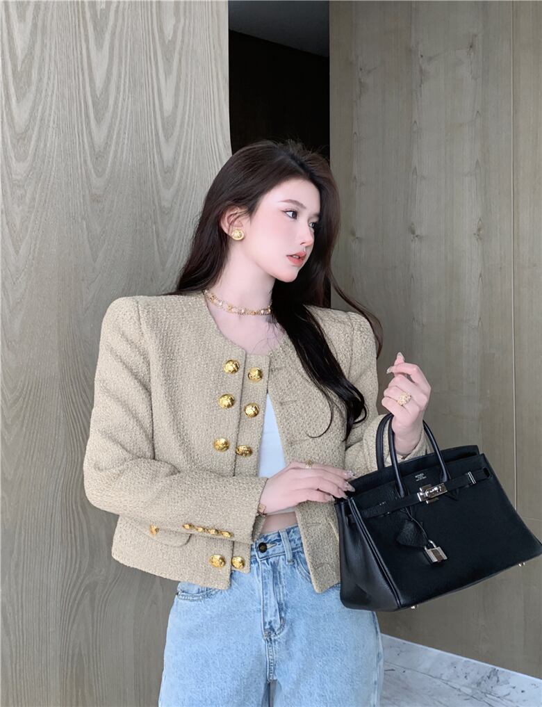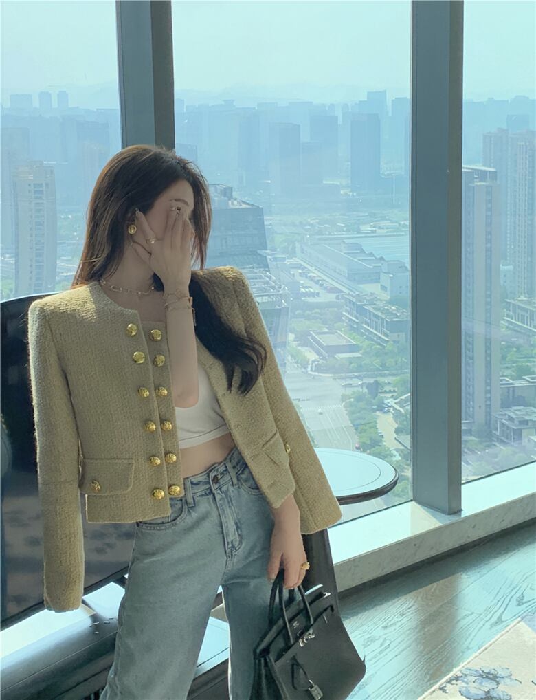 French Small Fragrance Double Breasted Short Temperament Sense Early Autumn Coat Cardigan Top Trend ショート カーディガン オータム 秋物 nana26918880148 | modepoisson