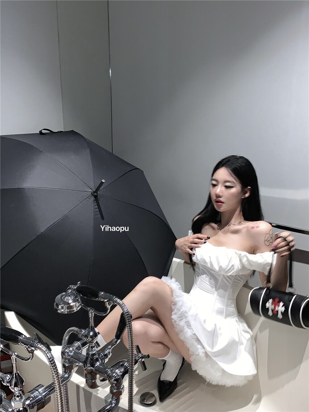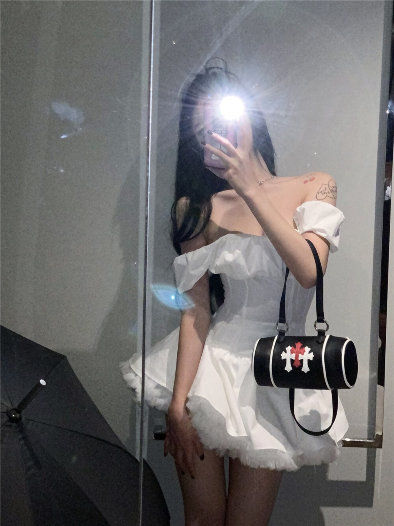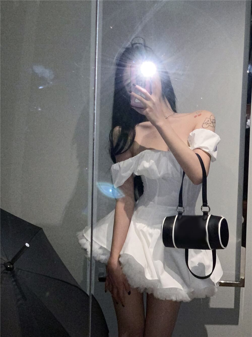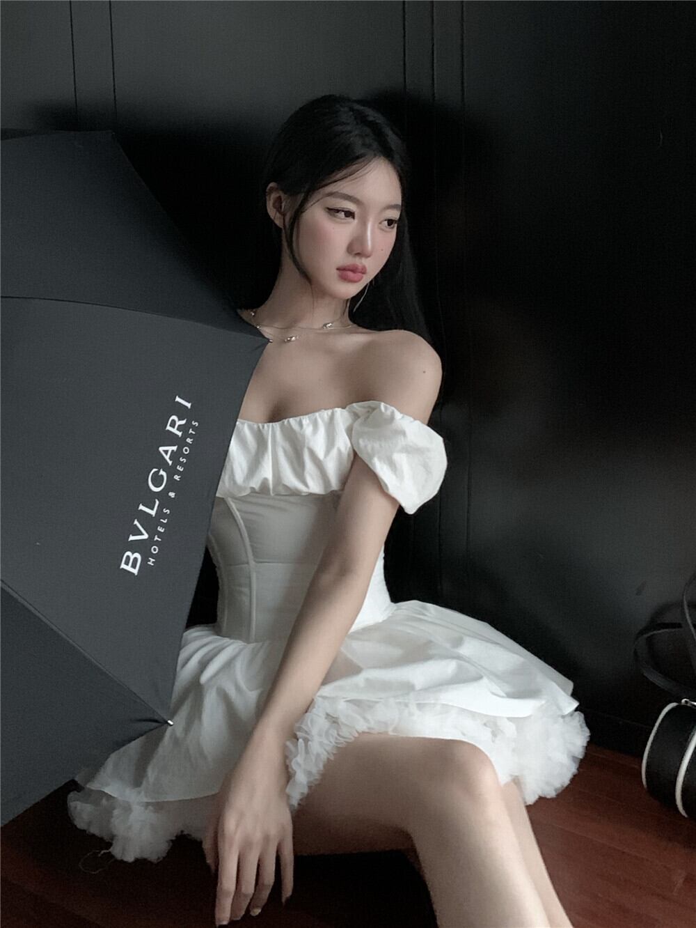 sense niche white one-shoulder top women's clothing early autumn new waist puffy a-line dress suit ホワイト オータム 秋物 Aライン nana26975058624 | modepoisson