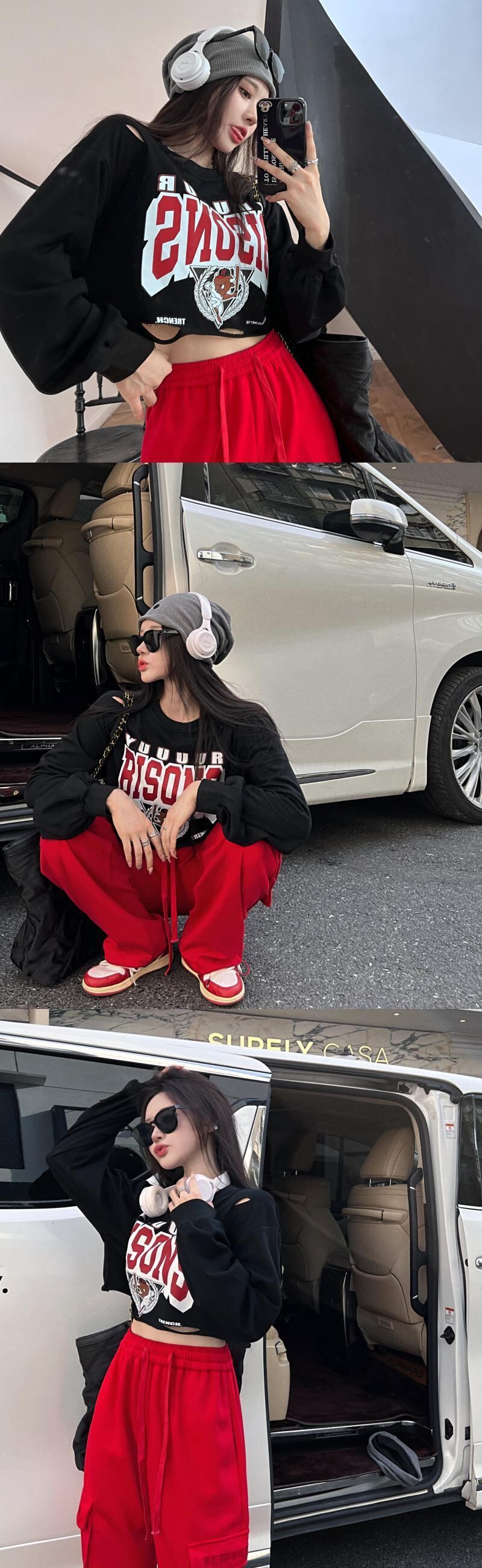 Net red fried street two-piece set early autumn temperament letter printing sweet and cool sweater overalls fashion suit female レッド ストリート 大人ガーリー スウィート キュート カジュアル オータム 秋物 nana32865449842 | modepoisson