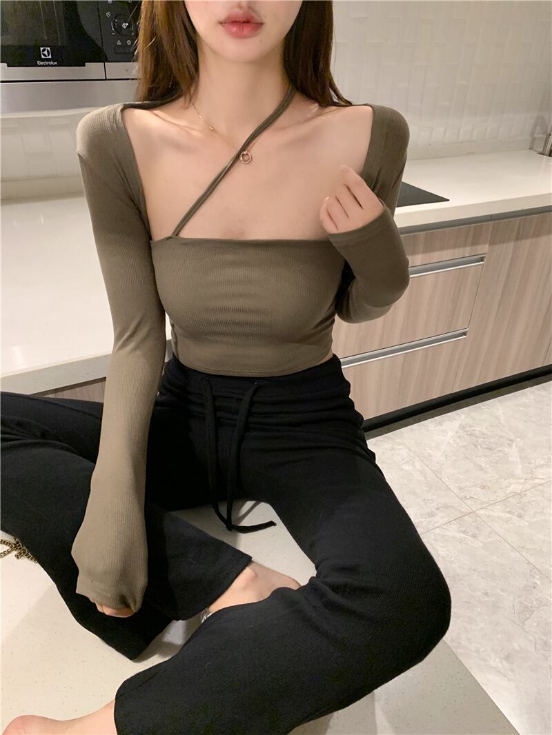 2022 early autumn new pure desire short sling sexy square collar long-sleeved slim fit bottoming t-shirt top women ショート ロング オータム 秋物 スリム Tシャツ ピュア スクウェア nana48217564628 | modepoisson