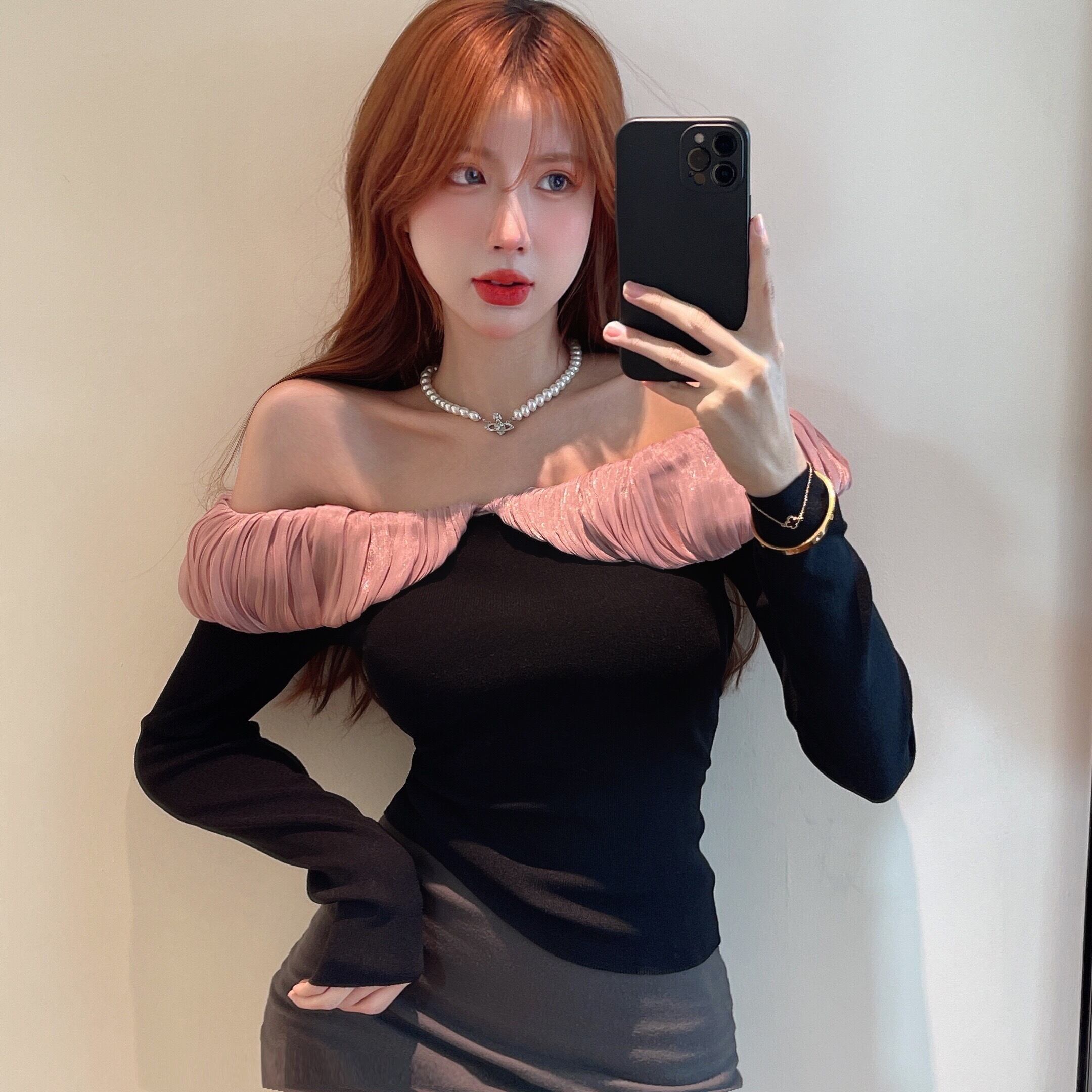 One-shoulder ruffled long-sleeved t-shirt women's 2022 early autumn new French design chic pure desire top ロング オータム 秋物 Tシャツ ピュア nana55353811533 | modepoisson