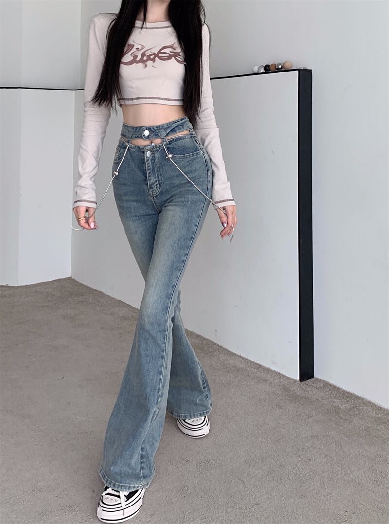sense niche hollow high waist thin loose straight wide leg denim trousers women's 2022 summer new pants ハイウェスト サマー 夏物 ワイドレッグ ワイドパンツ nana8549389031 | modepoisson