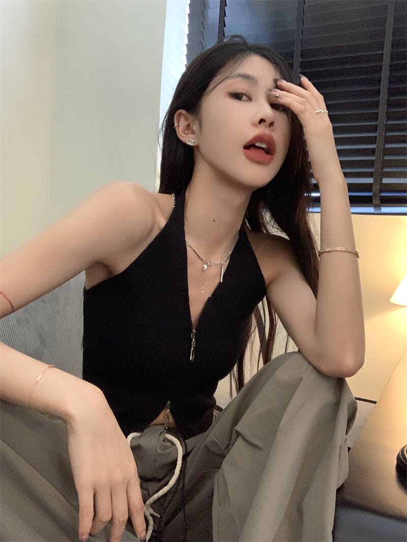 American Sweet Spice Vest Women's Summer Small Chic Outer Wear Short Sleeveless Halter Knit Top ショート 半袖 ハーフスリーブ 大人ガーリー スウィート キュート カジュアル サマー 夏物 ノースリーブ nana66046011928 | modepoisson