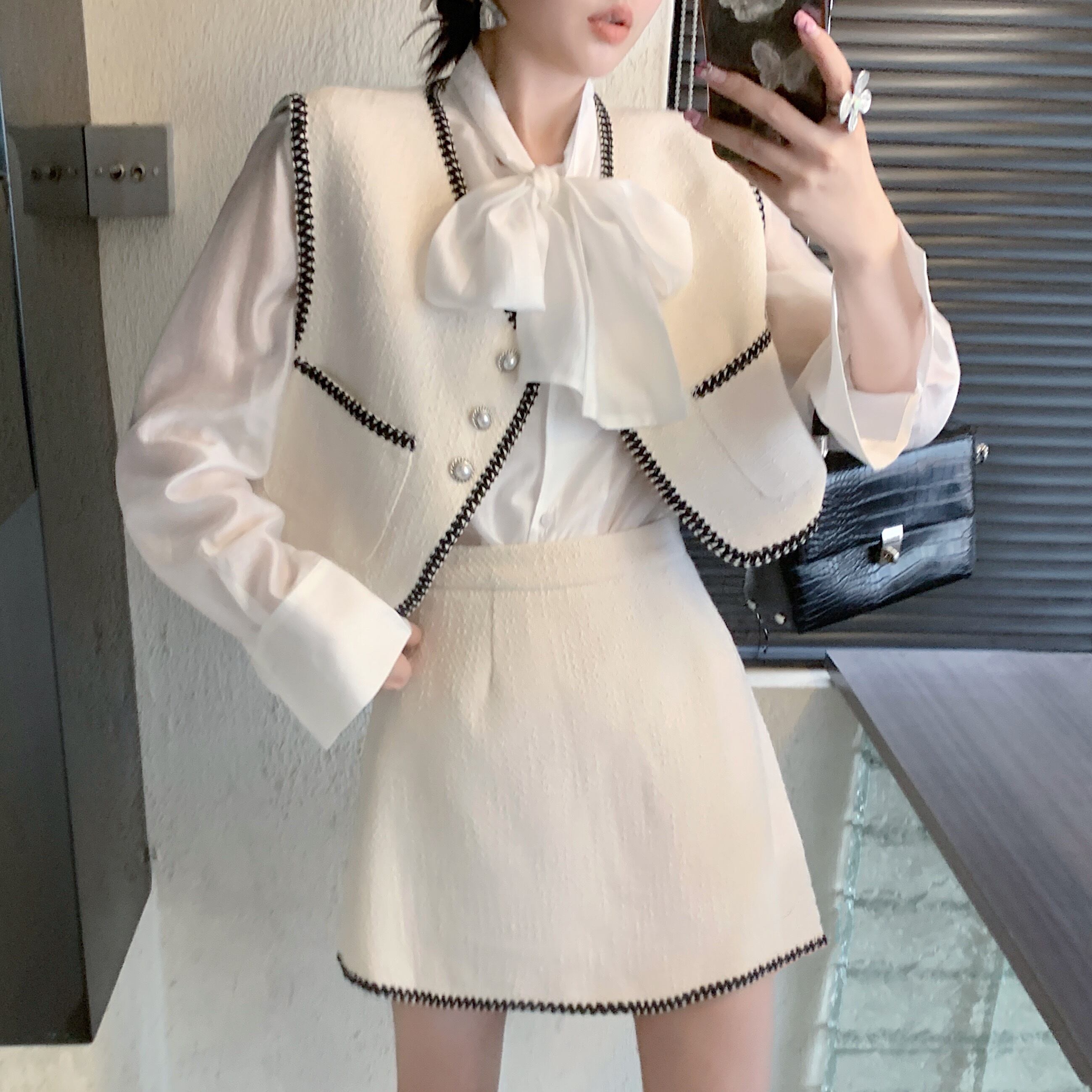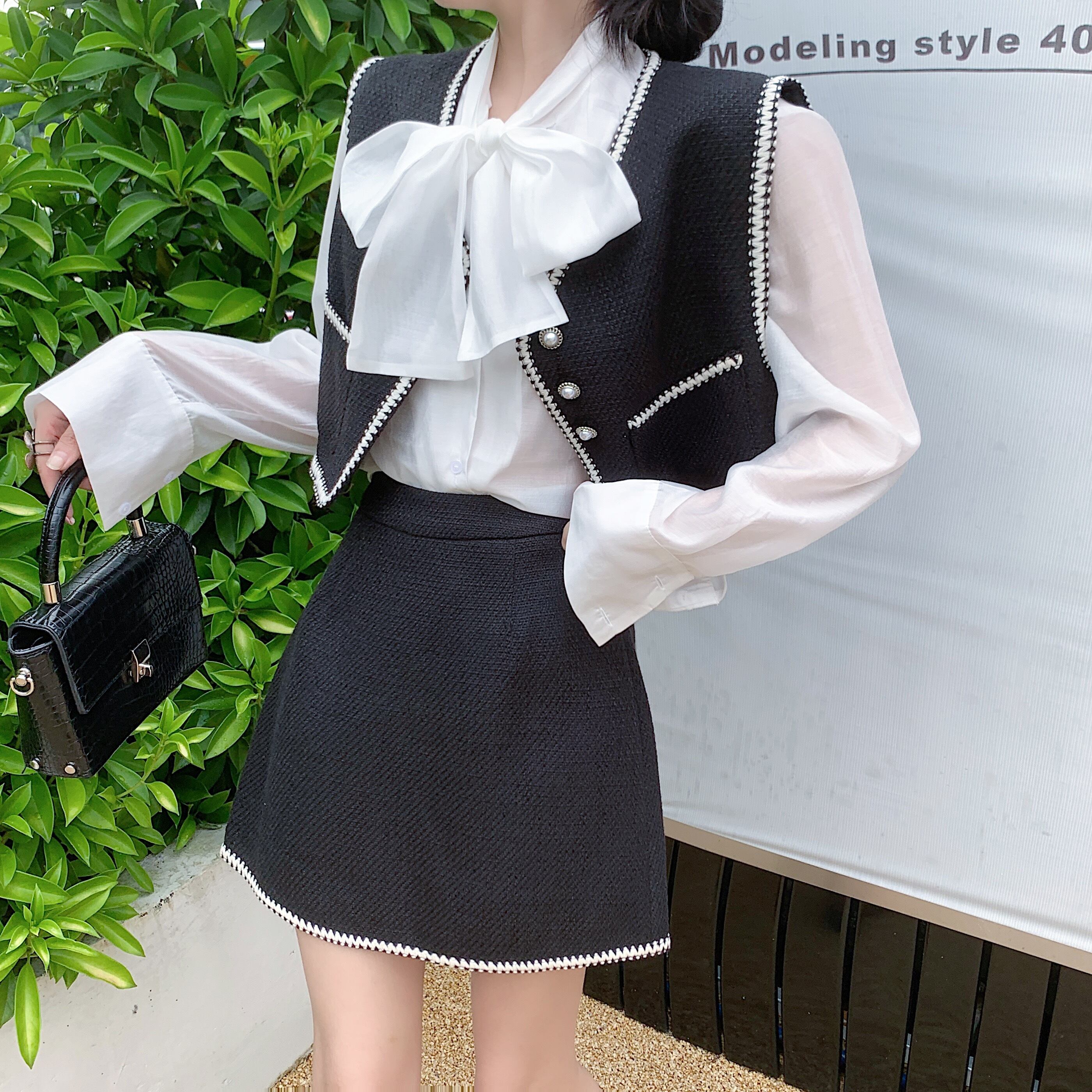 2022 early autumn new style small fragrance vest shirt skirt fashion celebrity temperament three-piece suit women's clothing オータム 秋物 スカート nana87726465549 | modepoisson