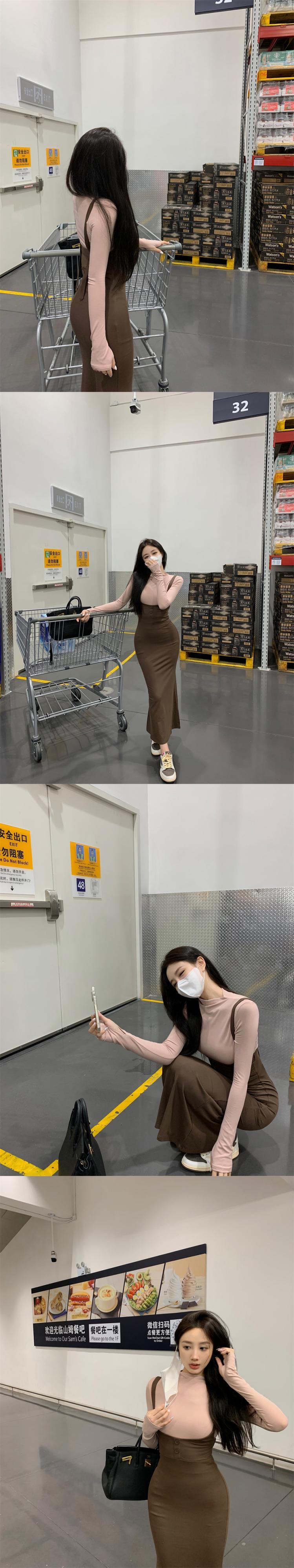 Salt series wear two-piece suit autumn 2022 new fashion long-sleeved t-shirt sexy strap fishtail dress women ロング オータム 秋物 Tシャツ nana99101575884 | modepoisson