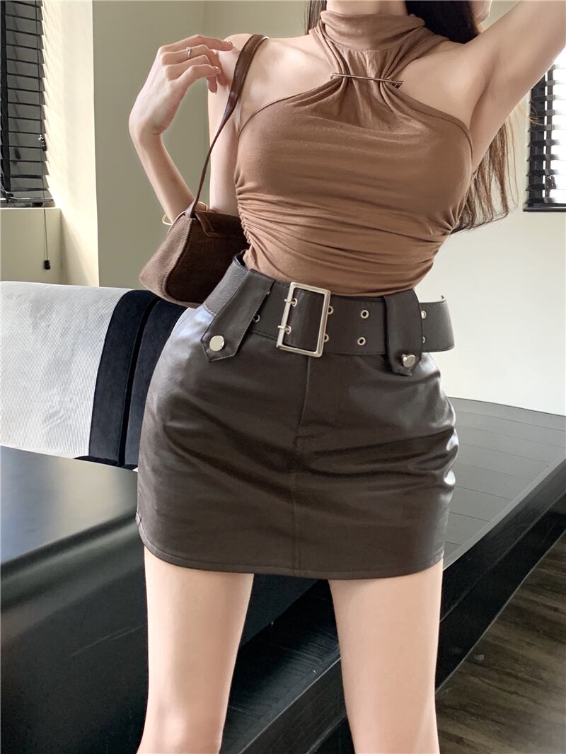 Hot short skirt a word bag hip skirt female 2022 early autumn new design high waist thin pu leather skirt skirt ハイウェスト ショート オータム 秋物 レザー スカート nana43738645288 | modepoisson