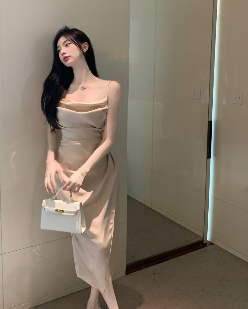 French satin suspender dress summer 2022 new fashion ladies temperament waist slim long skirt women's clothing ロング サマー 夏物 スカート サテン スリム nana91417054098 | modepoisson