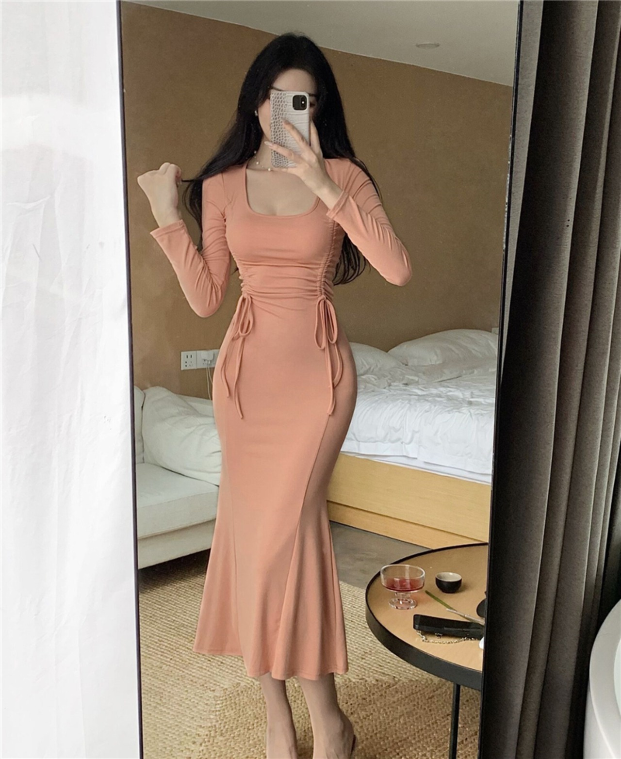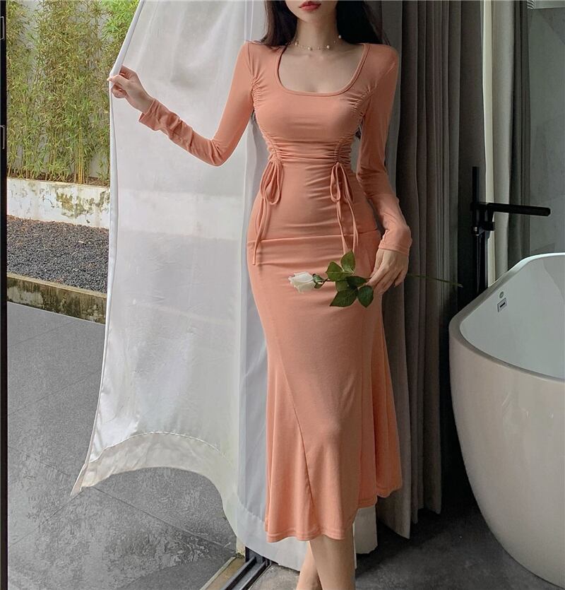 French temperament royal sister skirt autumn new long-sleeved drawstring tight bag hip slim long fishtail dress female ロング オータム 秋物 スリムヒップ スカート スリム nana83519508426 | modepoisson