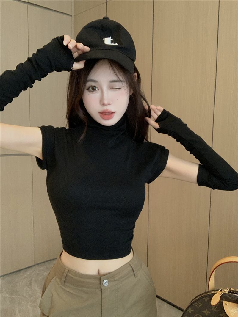 2022 autumn new careful machine hollow backless t-shirt half turtleneck slim fit and thin bottoming shirt top women's clothing オータム 秋物 スリム Tシャツ nana91120687240 | modepoisson