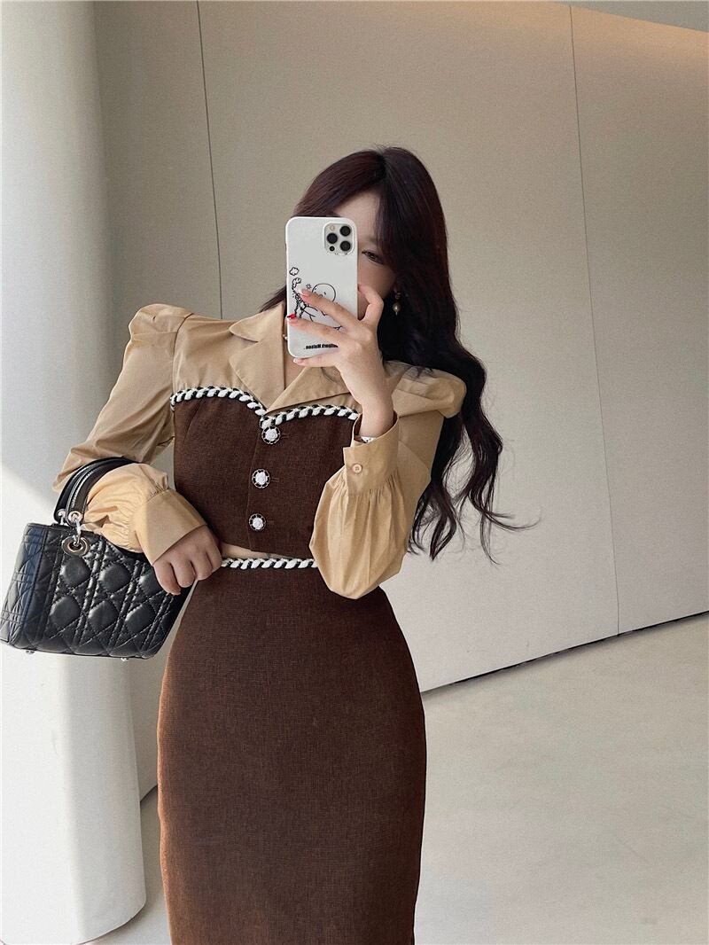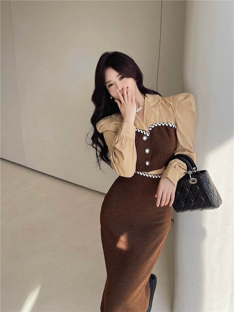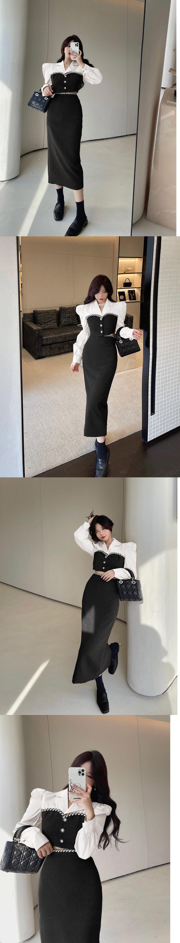 royal sister temperament two-piece suit female 2022 autumn new French short coat high waist slit half length skirt ハイウェスト ショート オータム 秋物 スカート nana42426875840 | modepoisson