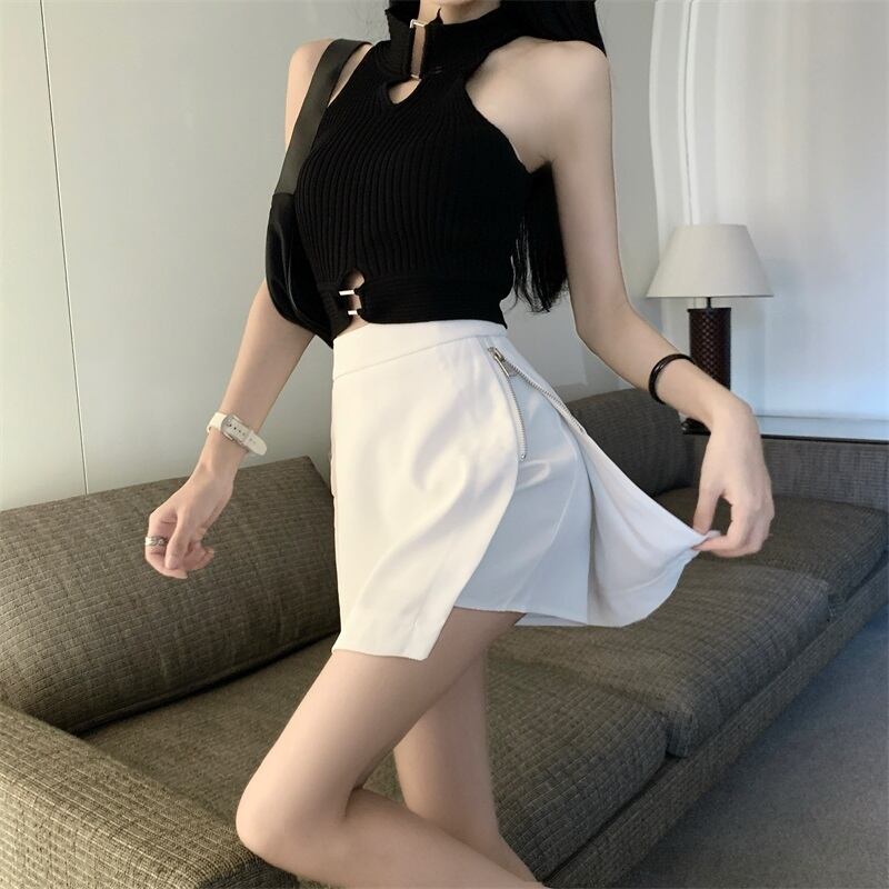 Skirt pants women's clothing 2022 summer new small black high waist bag hips show thin slit a-line short skirt ハイウェスト ショート ブラック サマー 夏物 スカート Aライン nana50961699616 | modepoisson