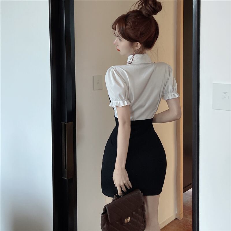 style dress summer 2022 new French temperament waist slimming bag buttocks fake two-piece short skirt women's clothing ショート サマー 夏物 スカート nana88197930281 | modepoisson