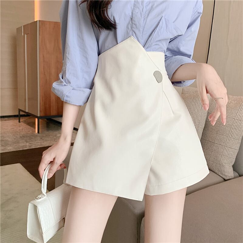 Black skirt women's clothing 2022 autumn new small man high waist, thin and irregular PU leather shorts skirt ハイウェスト ブラック オータム 秋物 レザー ショーツ ブルマー スカート nana25017781117 | modepoisson