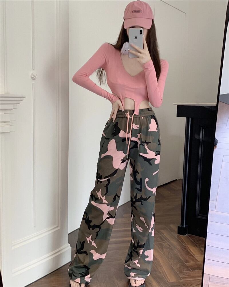 色:ホワイトトップ,ピンクトップ,ピンクCamoパンツ,アーミーグリーン迷彩パンツ