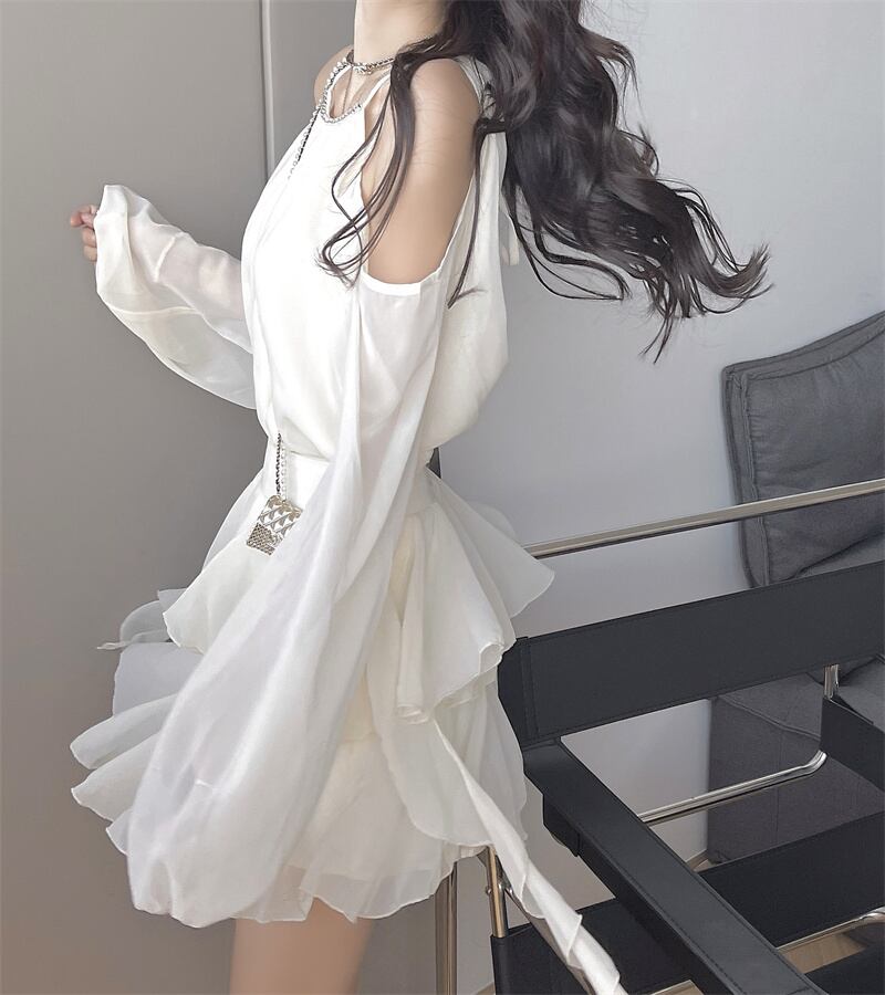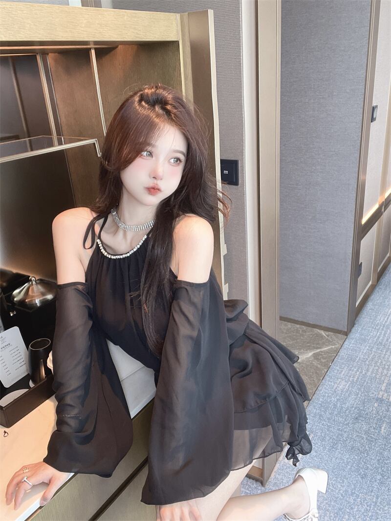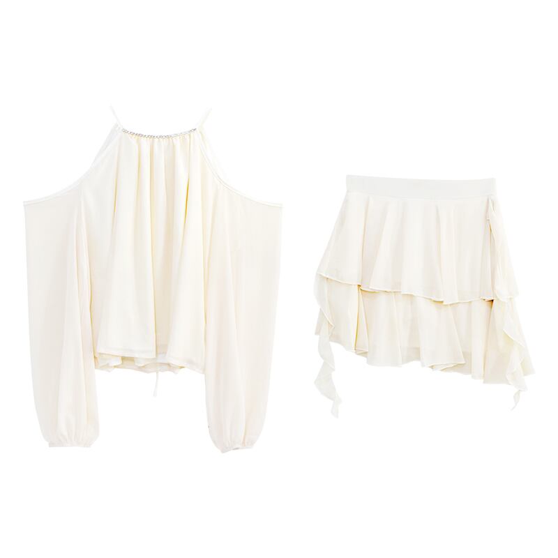 Early autumn dress with a small fragrance and a full set of women's 2022 new sexy off-the-shoulder long-sleeved shirts and skirts ロング シャツ オータム 秋物 スカート nana37117654655