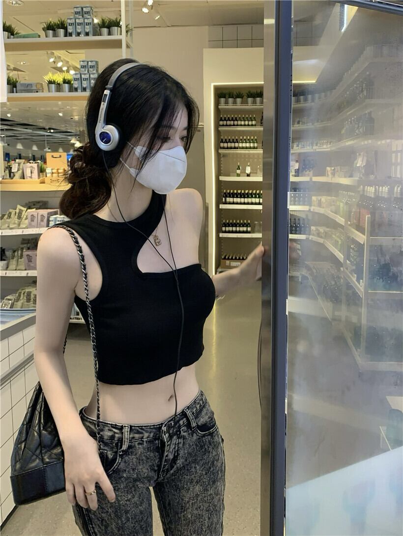 sense niche unique unique top summer sexy outer wear hollow collarbone short sleeveless vest women ショート 半袖 ハーフスリーブ サマー 夏物 ノースリーブ nana16561182688 | modepoisson